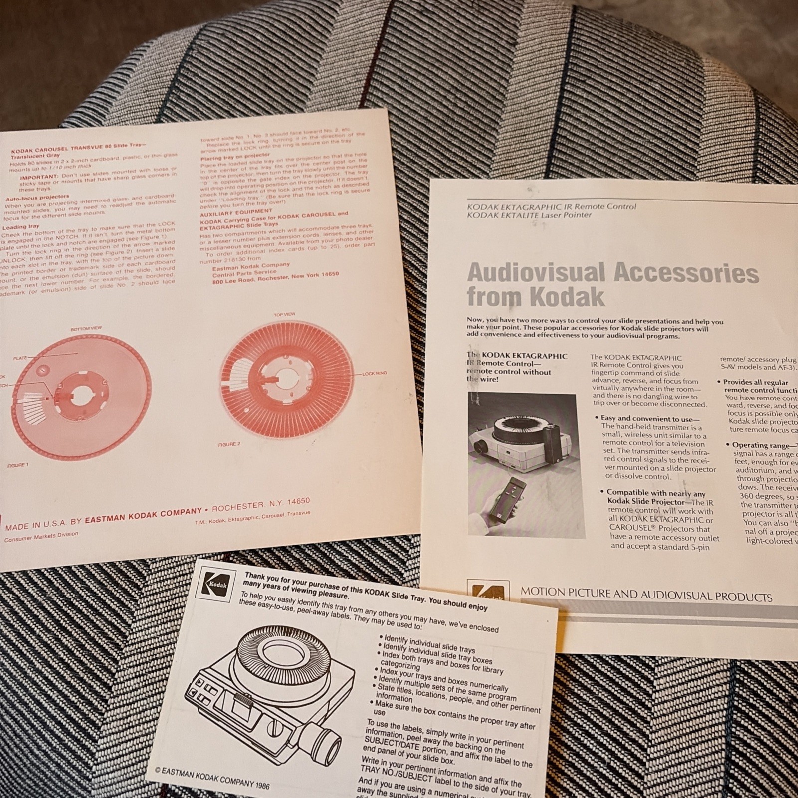 как выглядит Lot Of 2 Kodak Carousel Transvue 140 Projector Gray Slide Tray Original With Box фото
