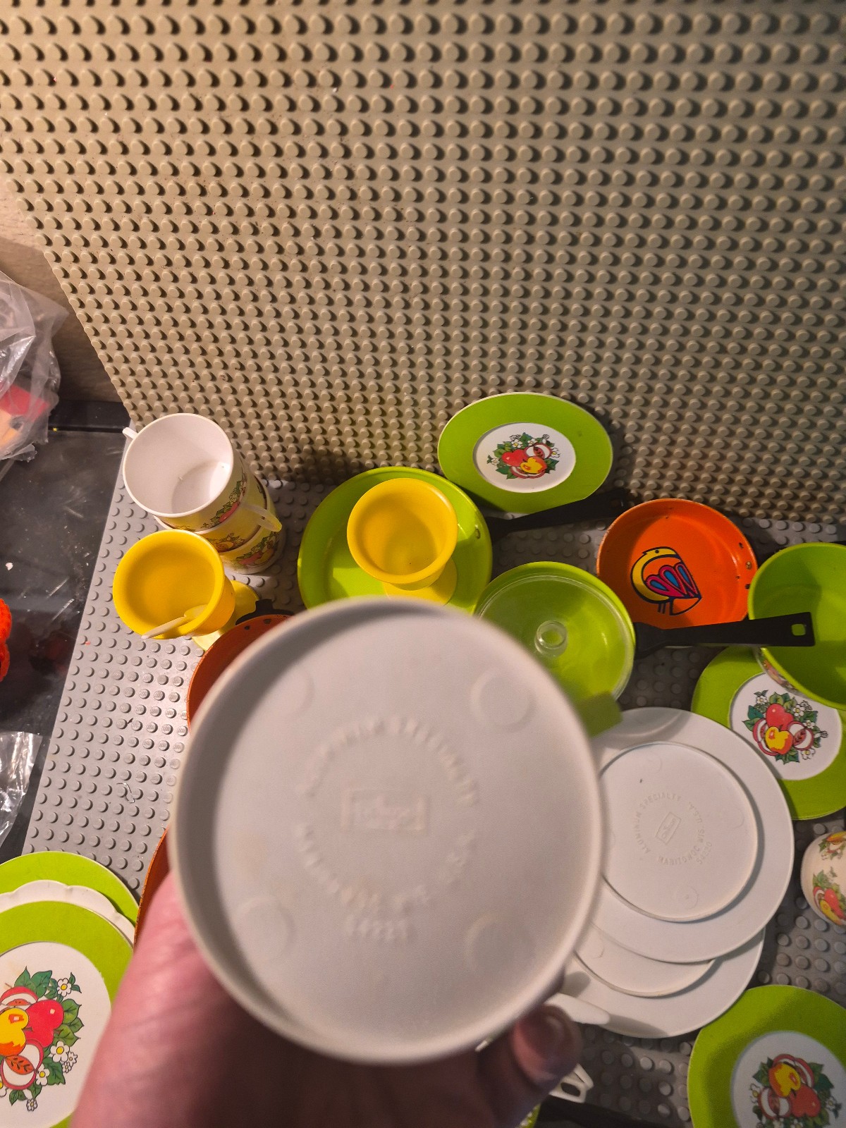 как выглядит Chilton Mushroom Toy Plastic Doll Tea Set Dishes Vintage 1970s lot фото