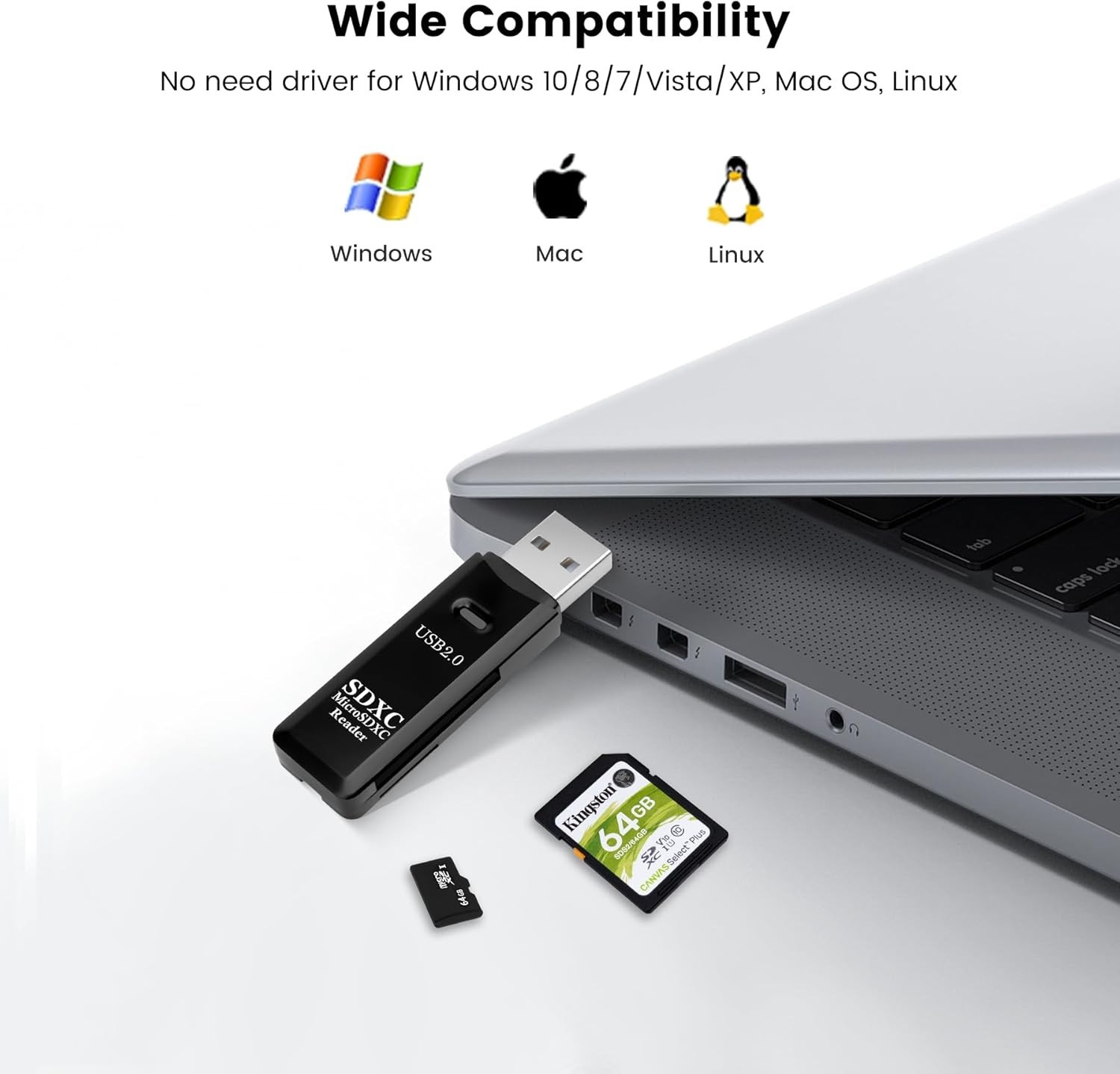Portable 480Mbps USB Card Reader with Dual Slots Plug Play for All Devices
