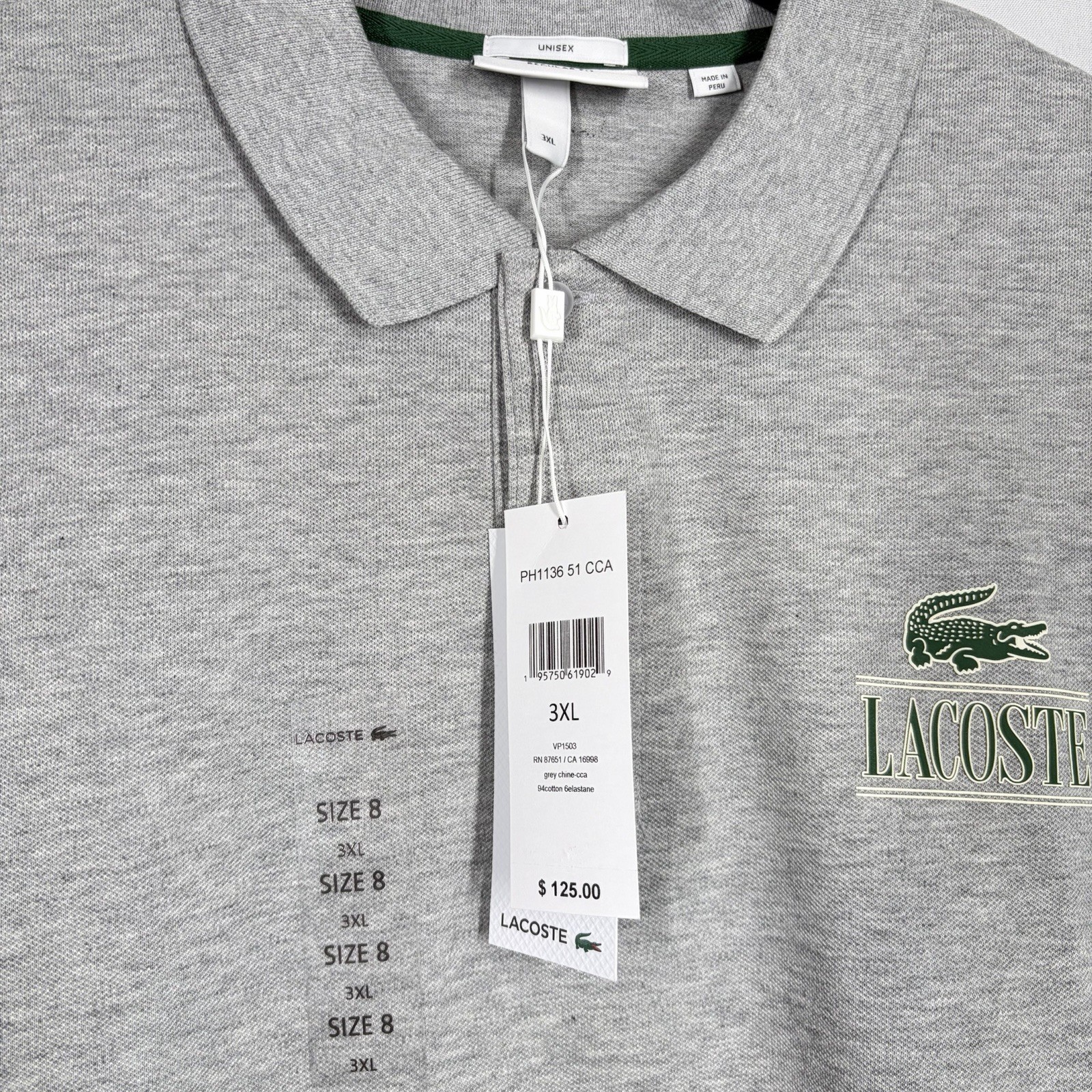 Lacoste Polo Shirt Mens 3XL Gray Regular Fit Short Sleeve Cotton NWT