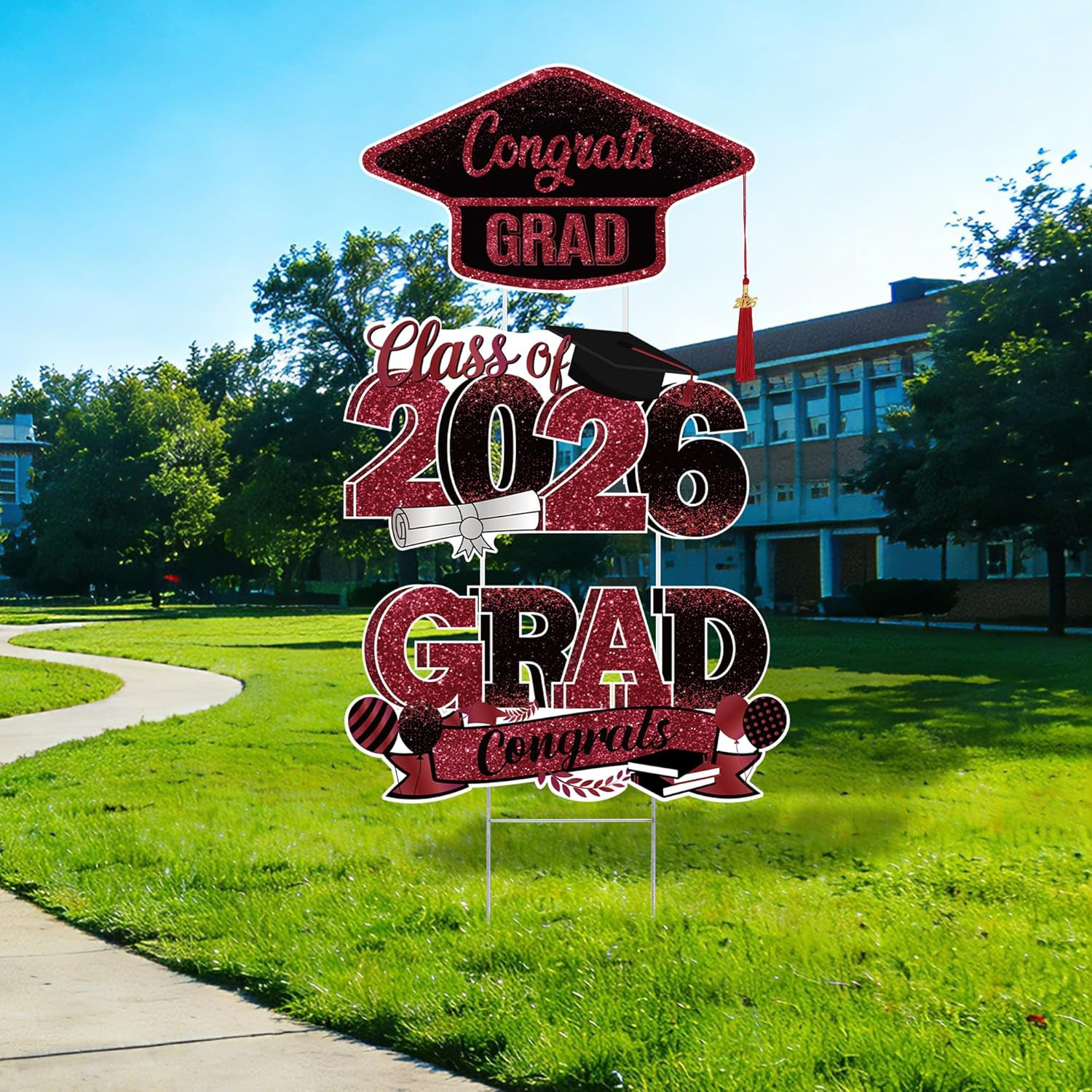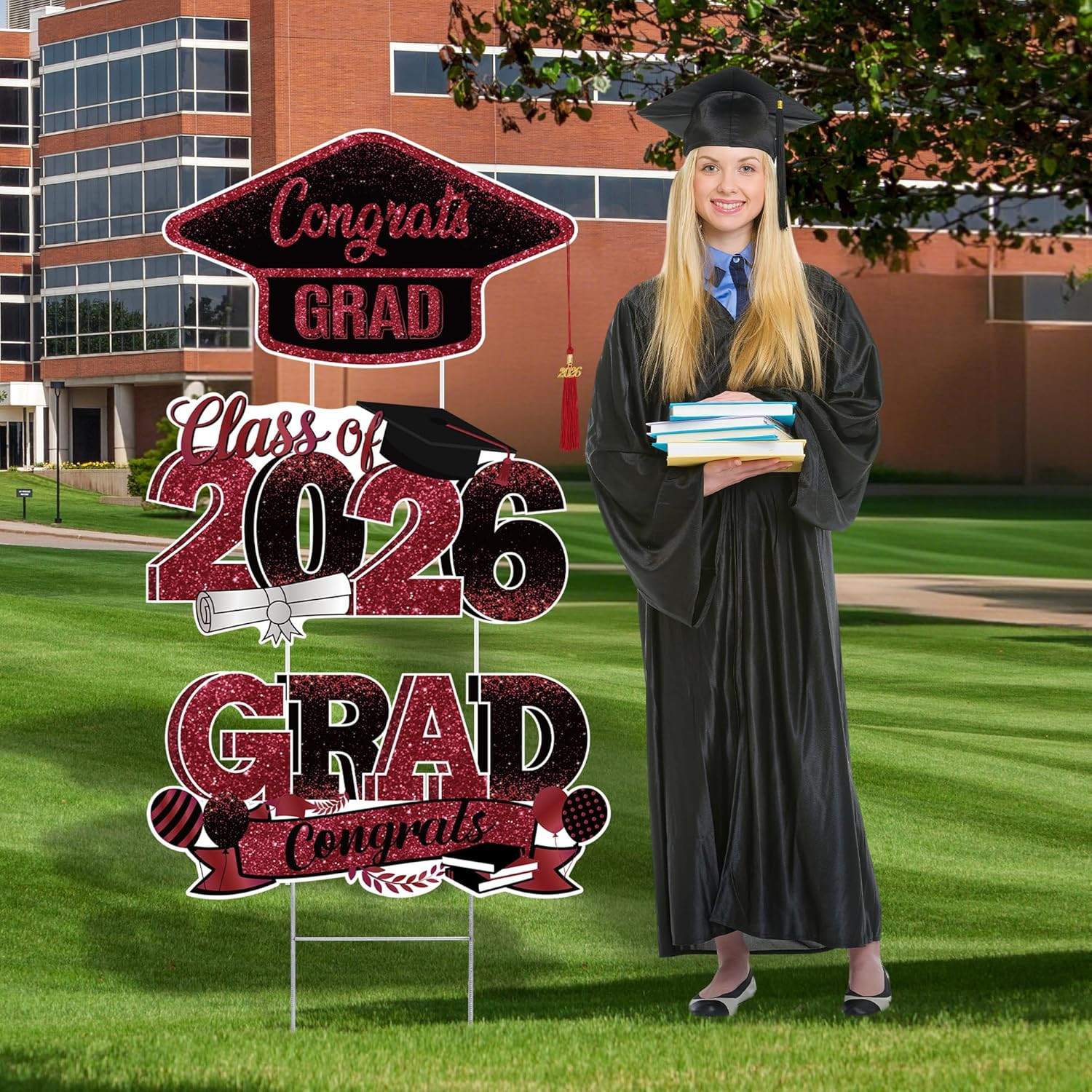 Graduation Yard Signs Class of 2026, 3-Pack Maroon Congrats Grad Yard Sign with