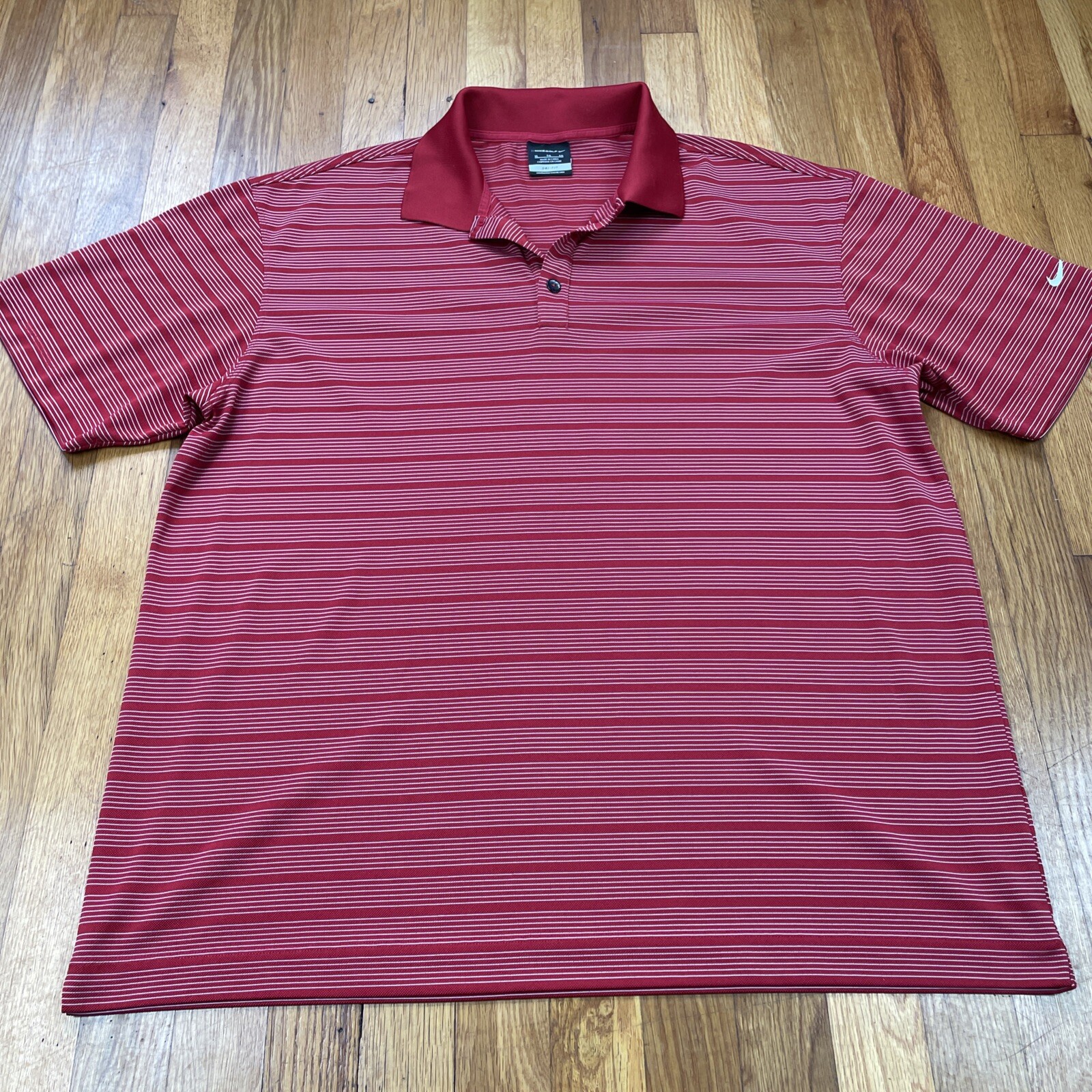 Nike Golf Shirt Mens XL Polo Dri Fit Athletic Performance Wicking Red Stripe