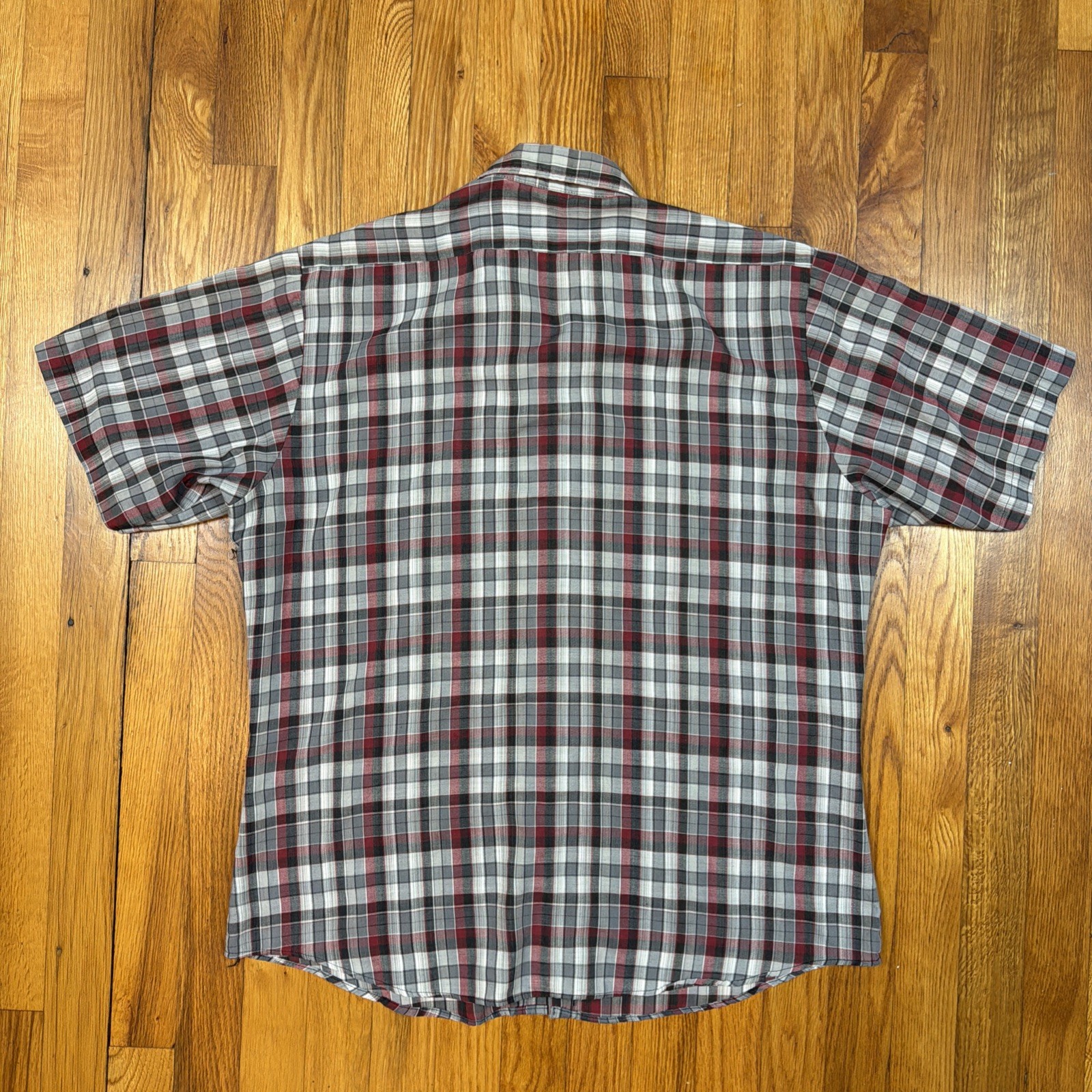 как выглядит Vintage 70s Wrangler Western Shirt Mens L Cotton Blend Made in USA Gray Plaid фото