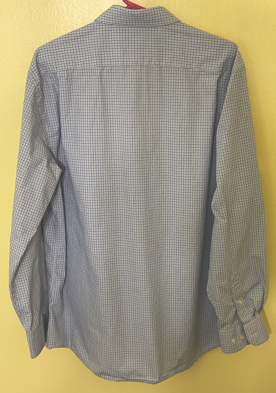 как выглядит GEORGE Mens Long Sleeve Button Up Shirt BLUE/WHITE PLAID Size L 42-44 фото