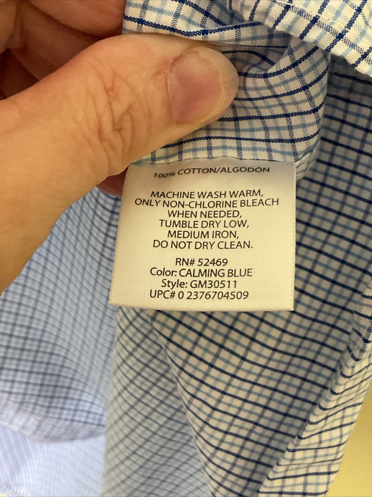 GEORGE Men's Long Sleeve Button Up Shirt BLUE/WHITE PLAID Size L 42-44