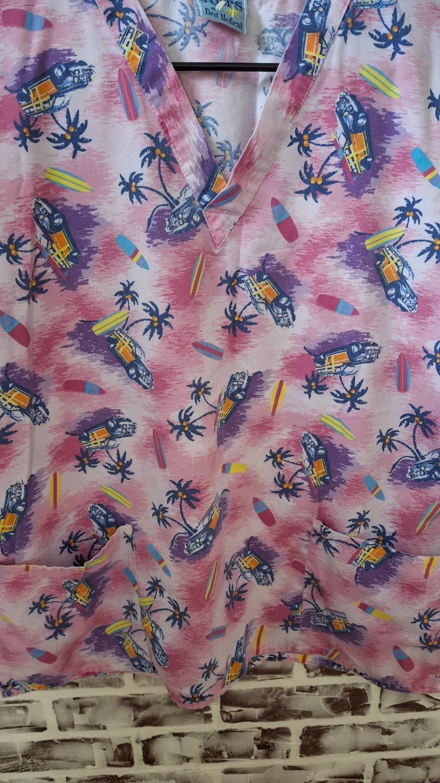 как выглядит Stars At Best Medical Large Scrub Top Pink Hawaiian Woody Nursing фото