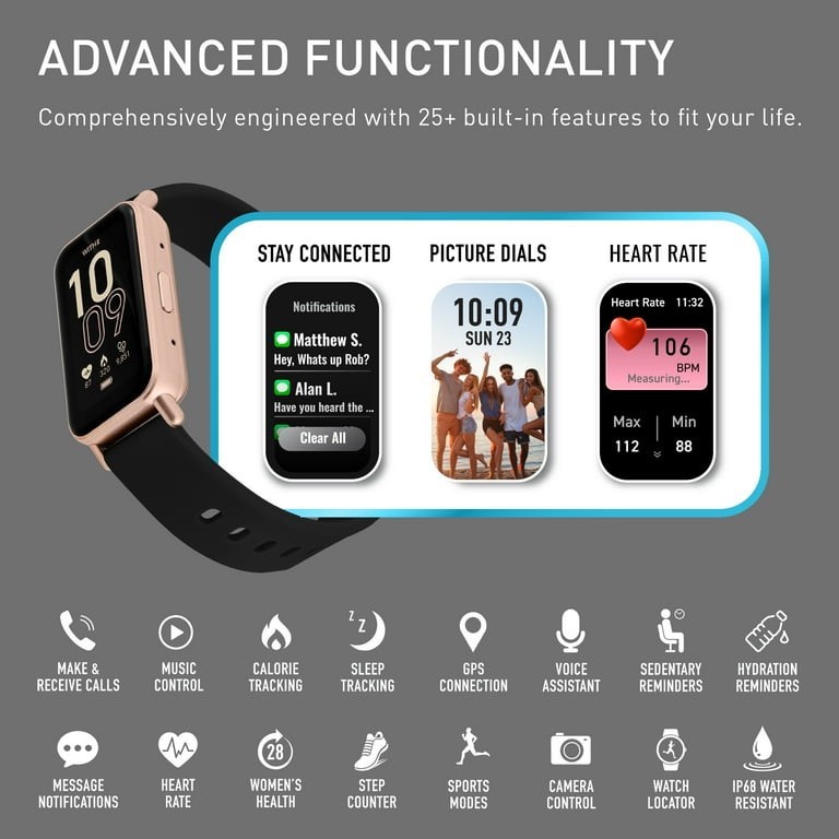 Особенности: Make & Receive Calls, Music Control, Calorie Tracking, Sleep Tracking, Message Notifications