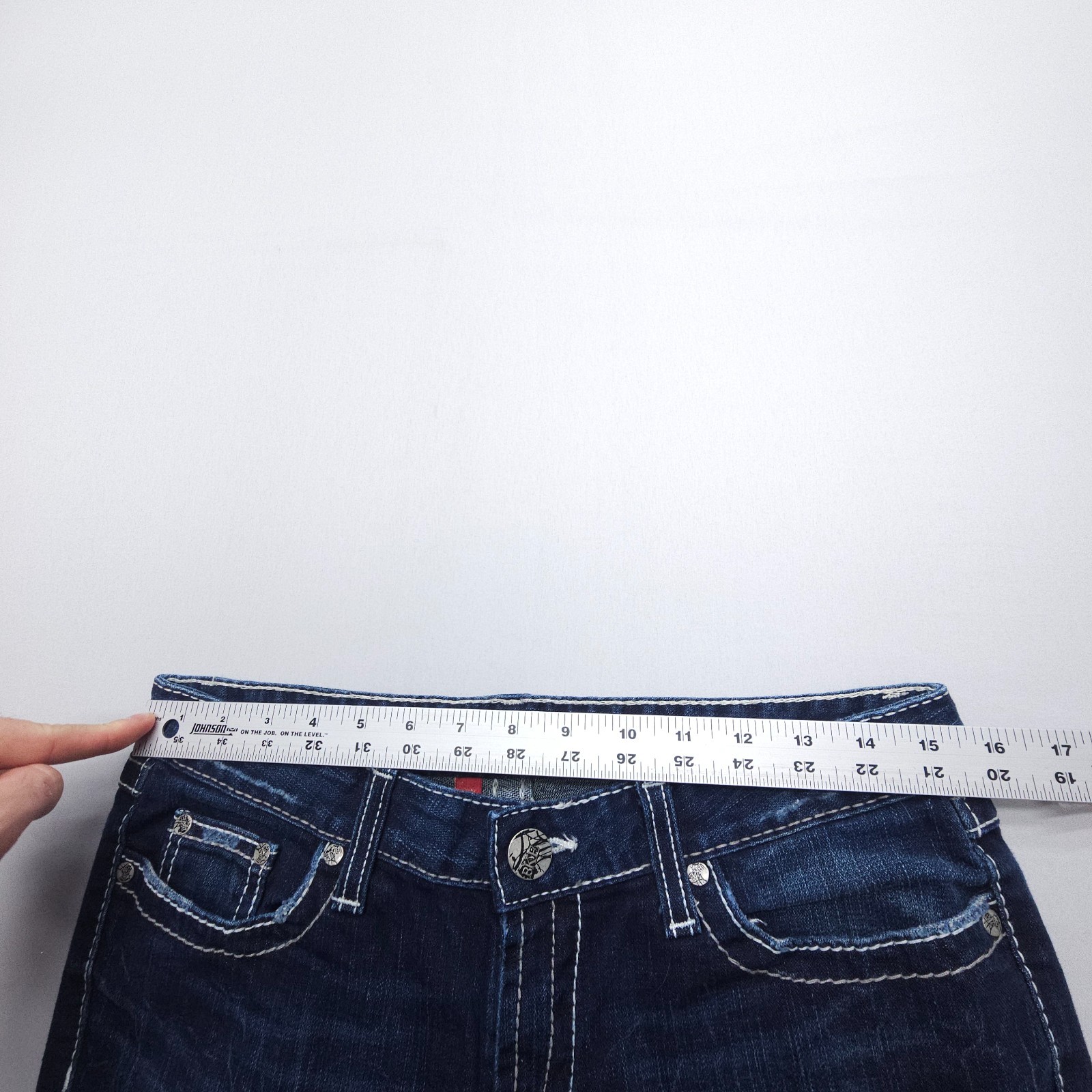 как выглядит Buckle BKE Madison Skinny Low Rise Jeans Size 30 x 31.5 Dark Wash Embellished фото