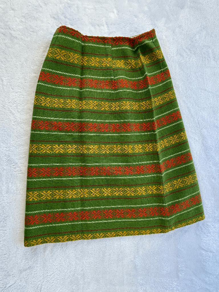 как выглядит Vintage 1970s Wrap Skirt Knee Length Green/Yellow, Buttons Reto Size 26/27 Waist фото