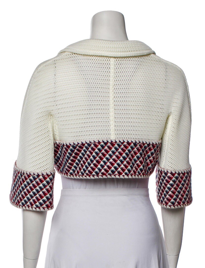 4.5K New Chanel 2013 White Mesh Tweed Crop Jacket 34 36 2 4 6 Coat Top Pearl S M