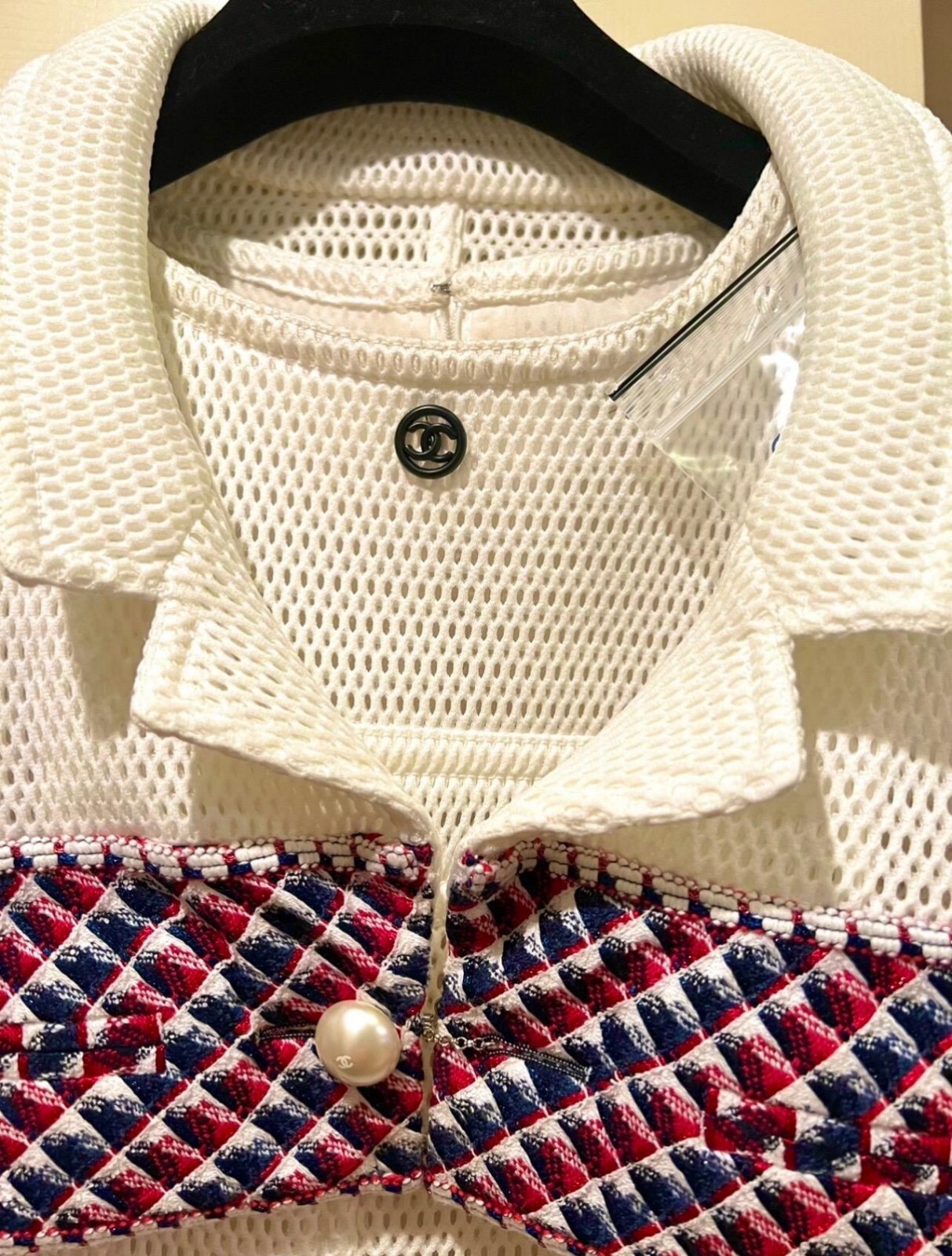 как выглядит 4.5K New Chanel 2013 White Mesh Tweed Crop Jacket 34 36 2 4 6 Coat Top Pearl S M фото