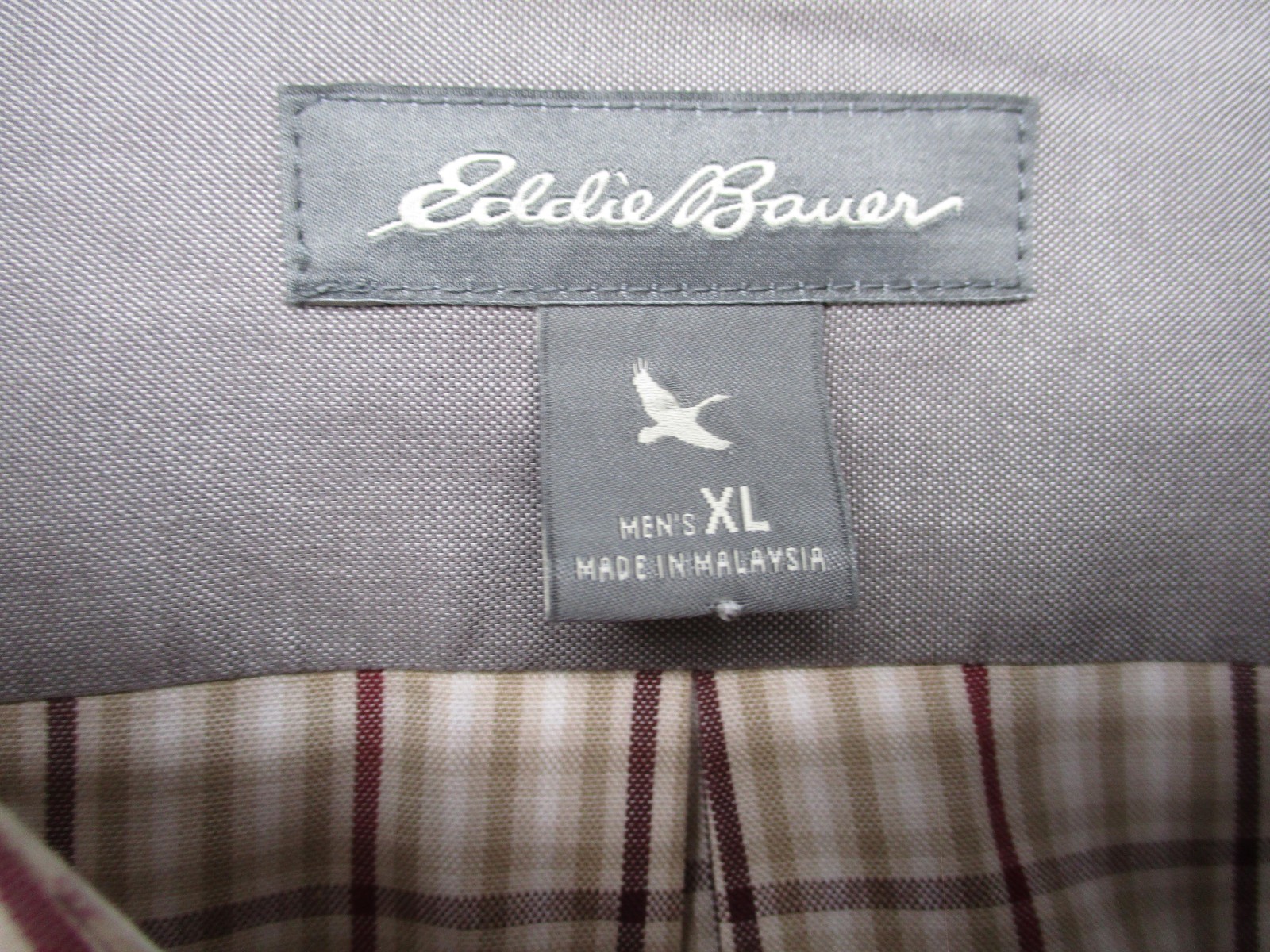 Eddie Bauer Shirt Mens XL Beige Plaid Long Sleeve Button Down Wrinkle Free