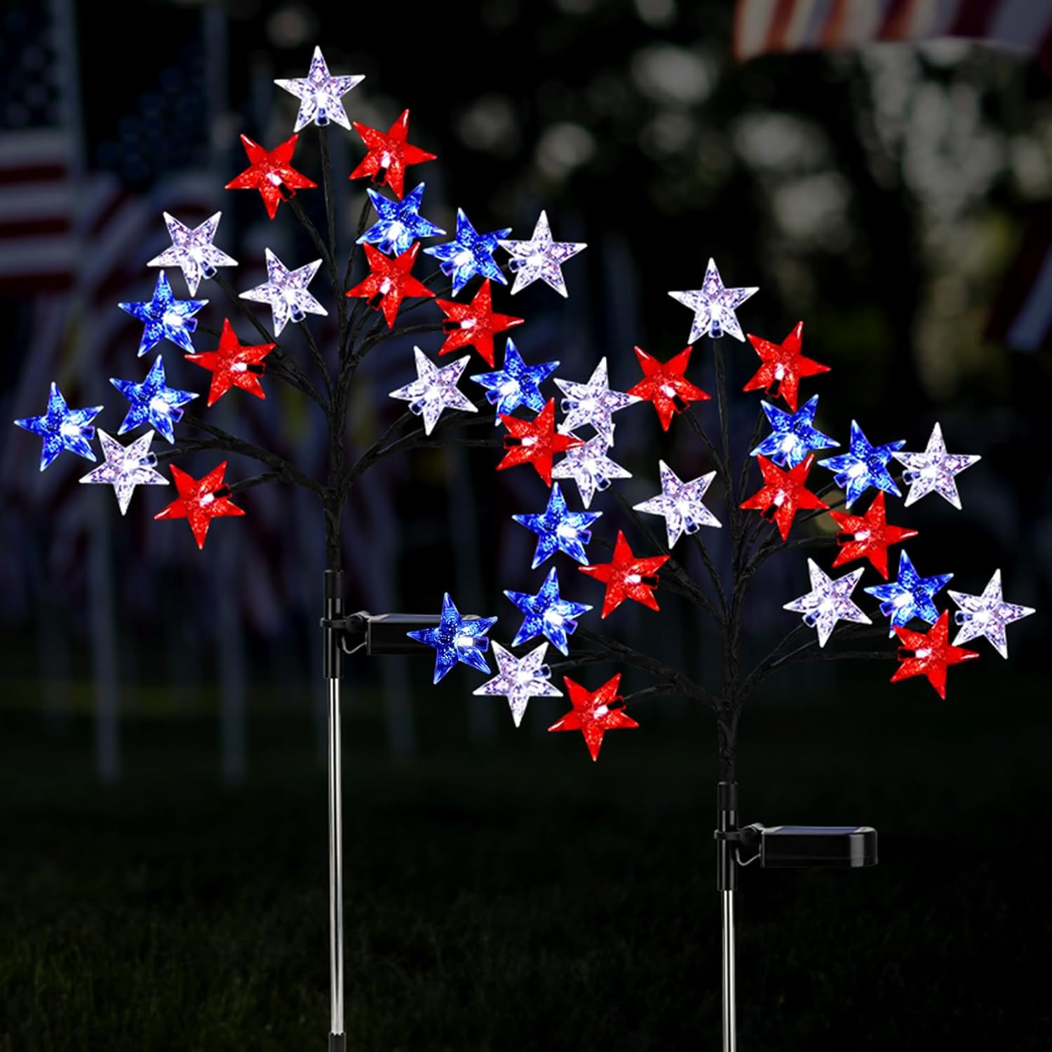 Solar 4Th of July Stake Lights, Red White and Blue Lights Outdoor Decorations, L