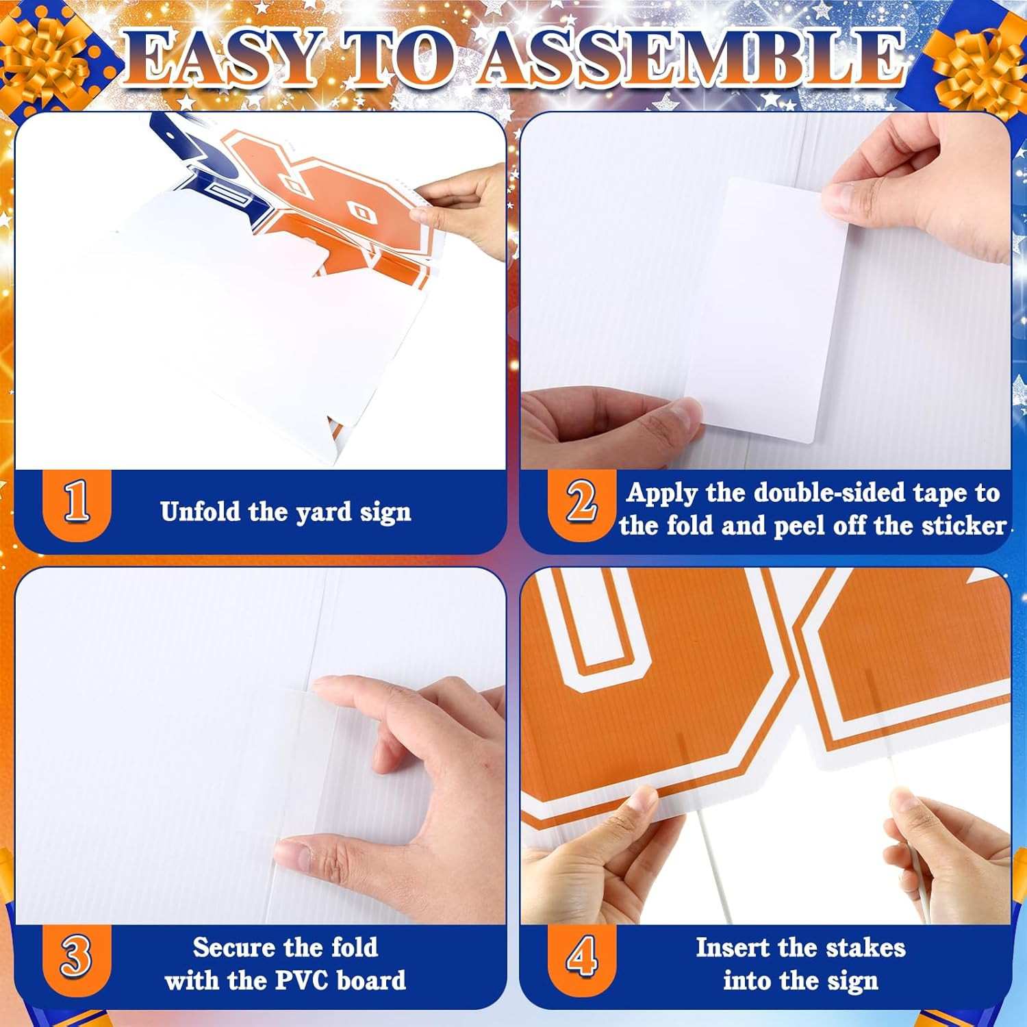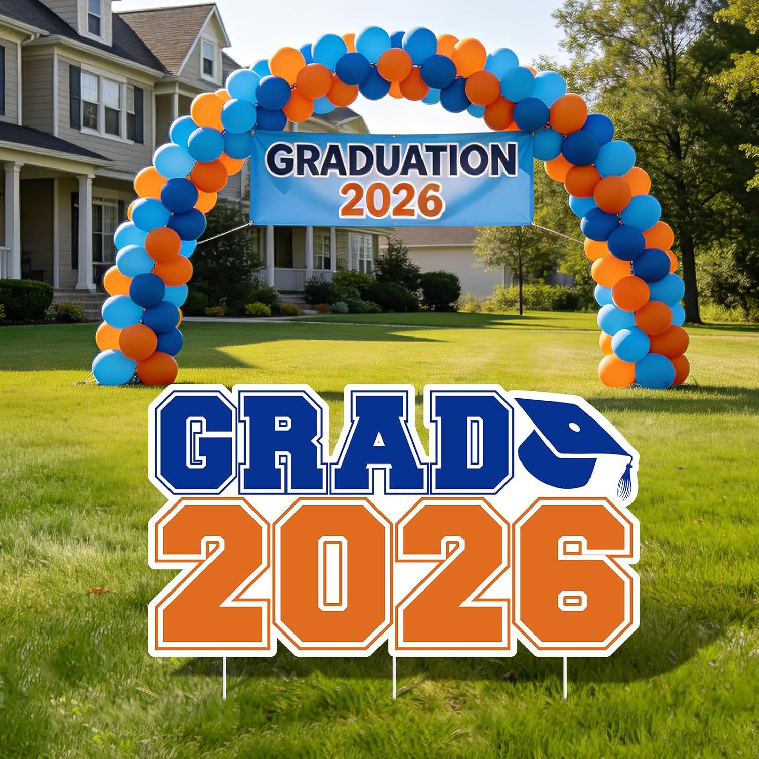 Grad 2026 Graduation Yard Sign with Stakes Large Blue Orange Corrugated Plastic