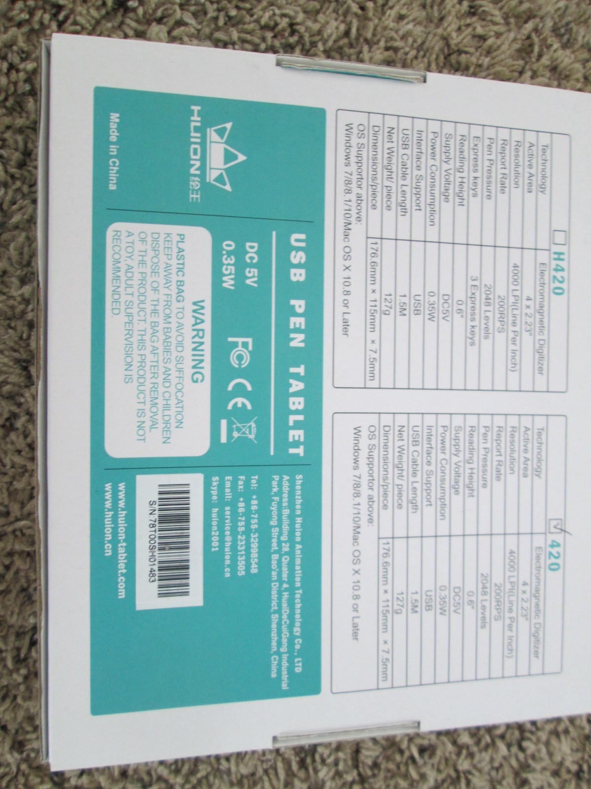 Huion H420 USB Graphics Drawing Tablet with Pen Tested Works Perfectly