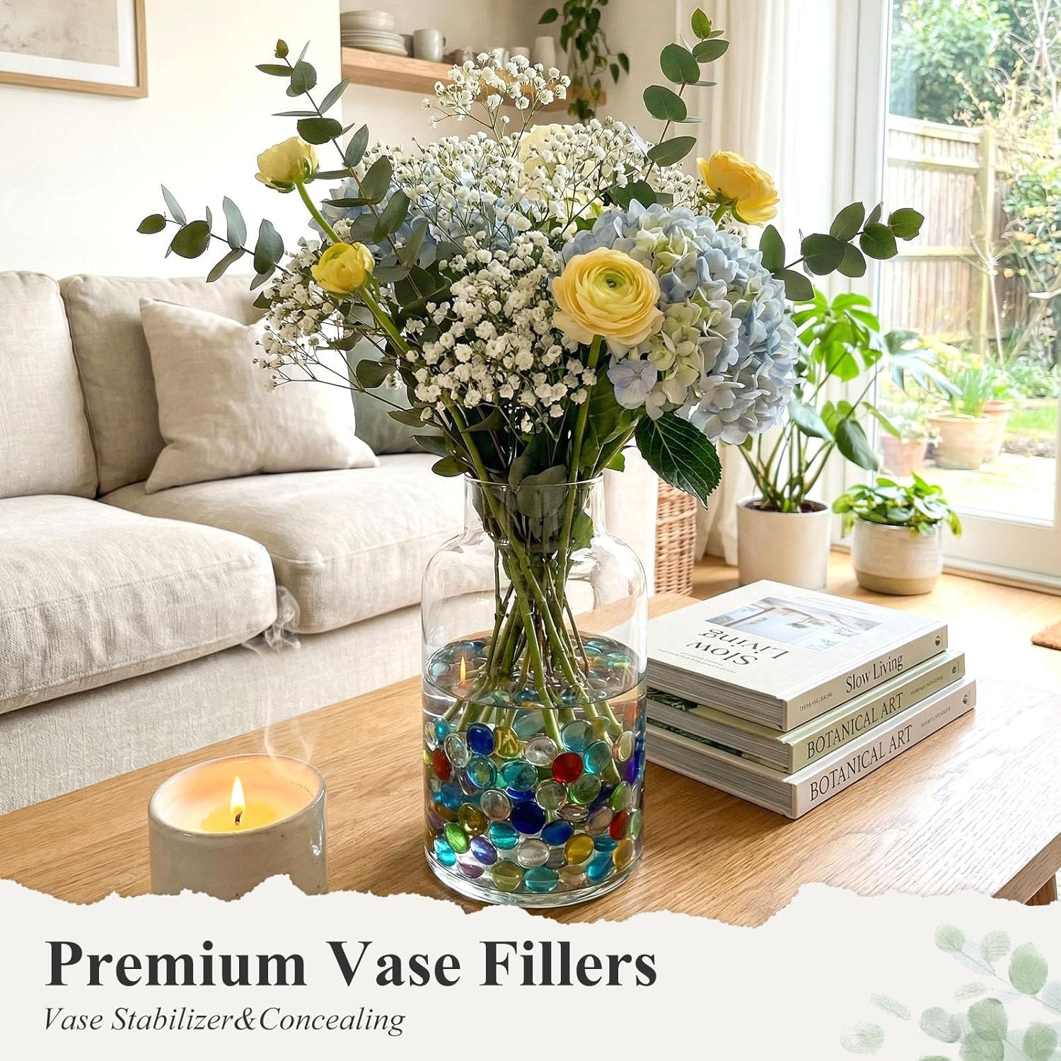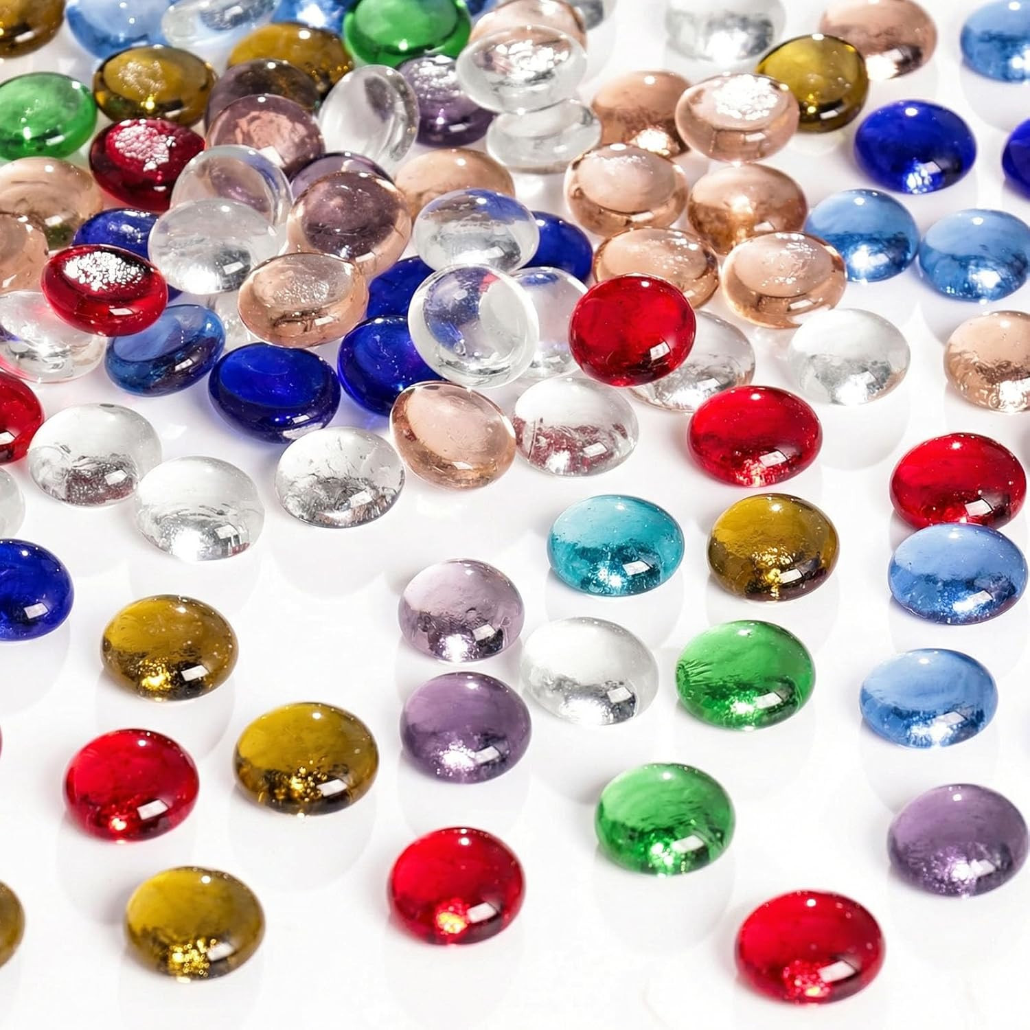1LB Decorative Flat Marbles, Mixed Colors Glass Pebbles Beads for Vases Fillers