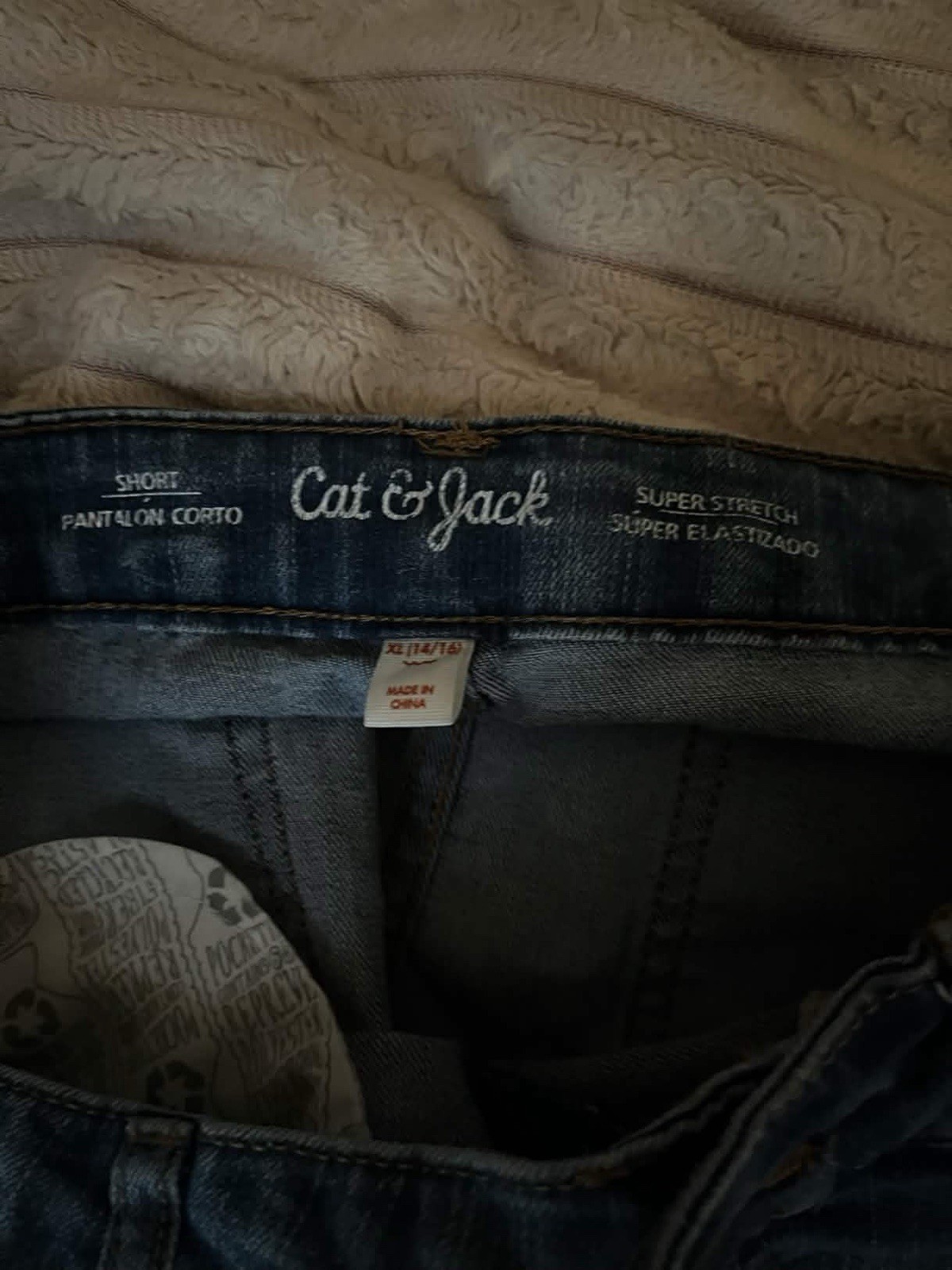 Kids Cat Jack XL 14/16 Denim Shorts with White Floral Embroidery Elastic Waist