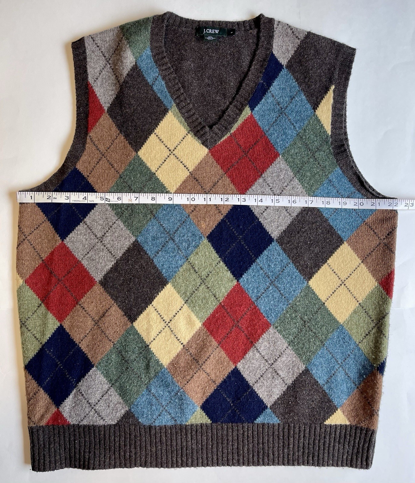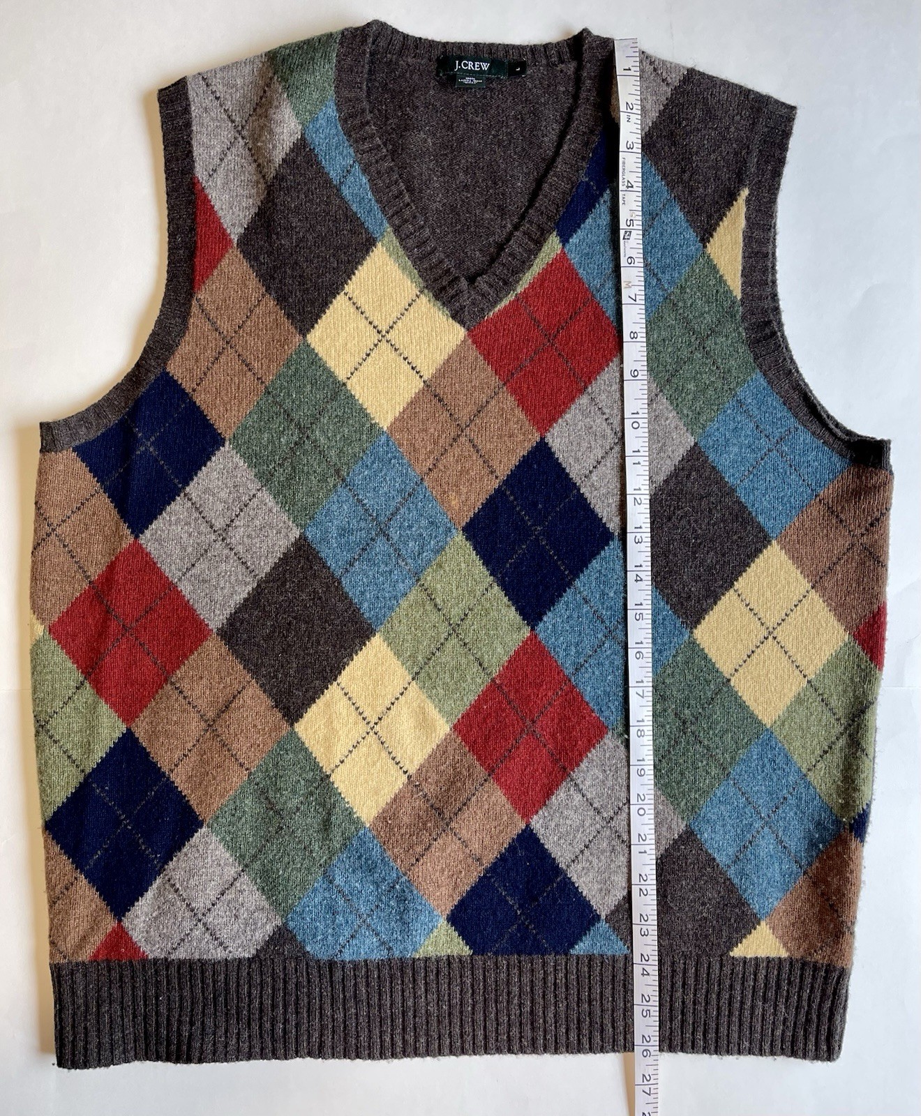 как выглядит Beautiful J Crew 100 Lambswool Multicolor Argyle Sweater Vest Sz L фото