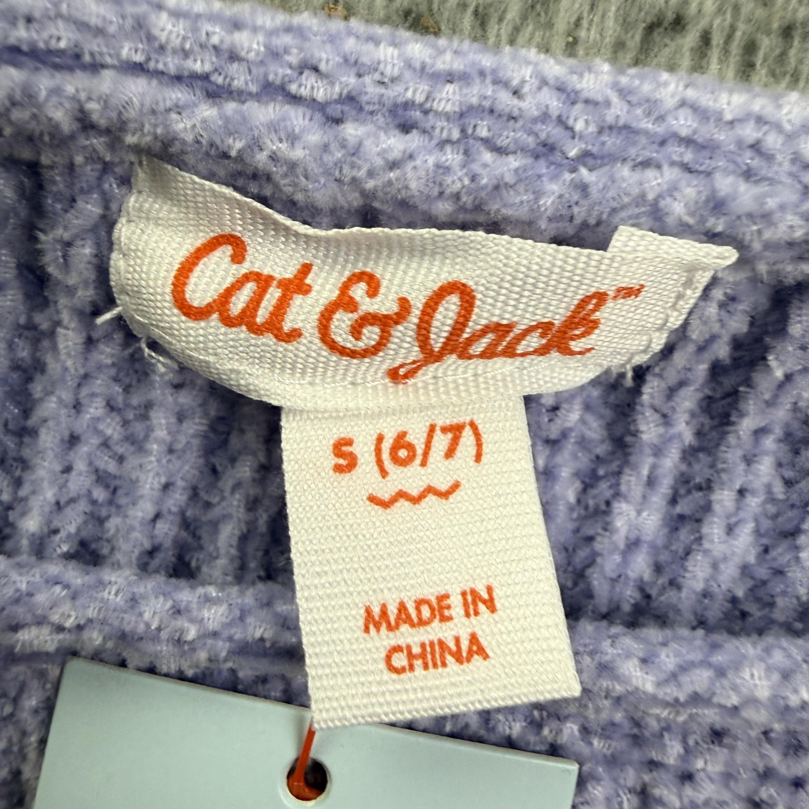 Cat Jack Sweater Youth Small 6/7 Purple Ribbed Knit Crewneck Pullover NWT