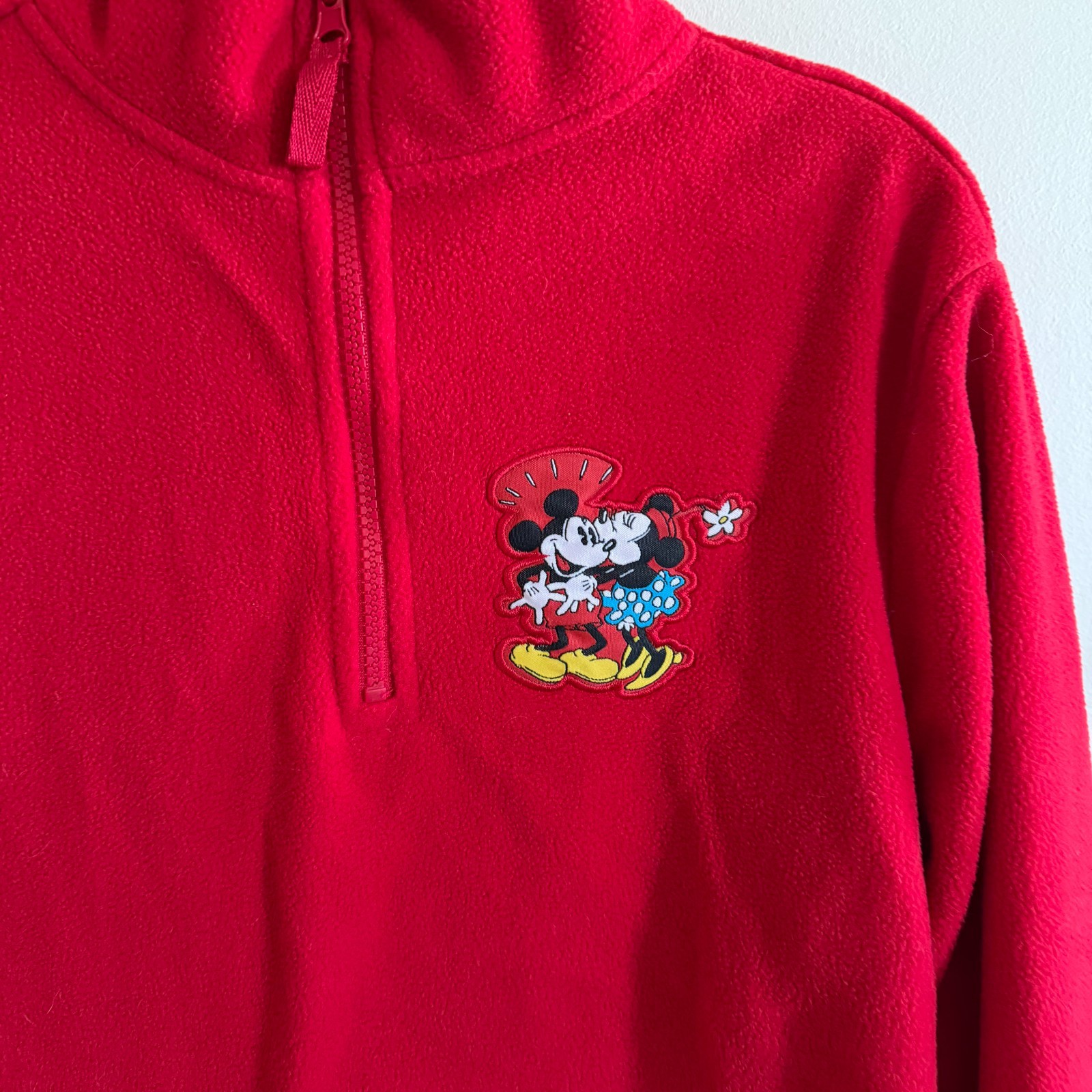 • Vintage Disney Store Small Mickey Mouse Red Fleece Quarter Zip Pullover Plush