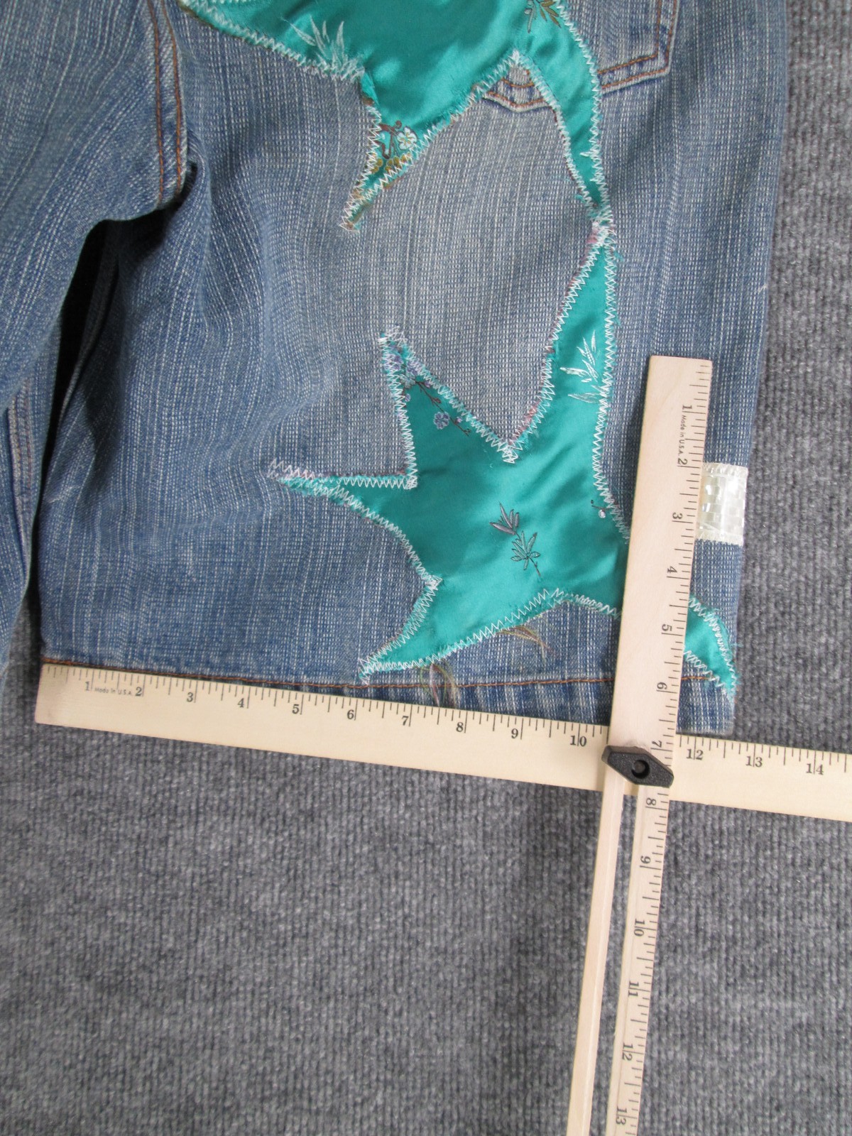 как выглядит Claudio Nucci Y2K Denim Shorts 36 Blue Teal Star Applique Embroidered фото