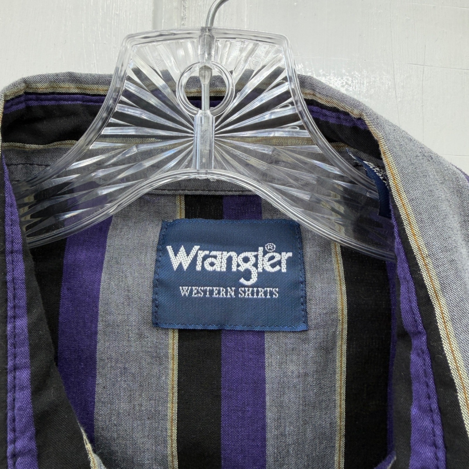 как выглядит Vintage Wrangler Western wear pearl snap button down short sleeve shirt men