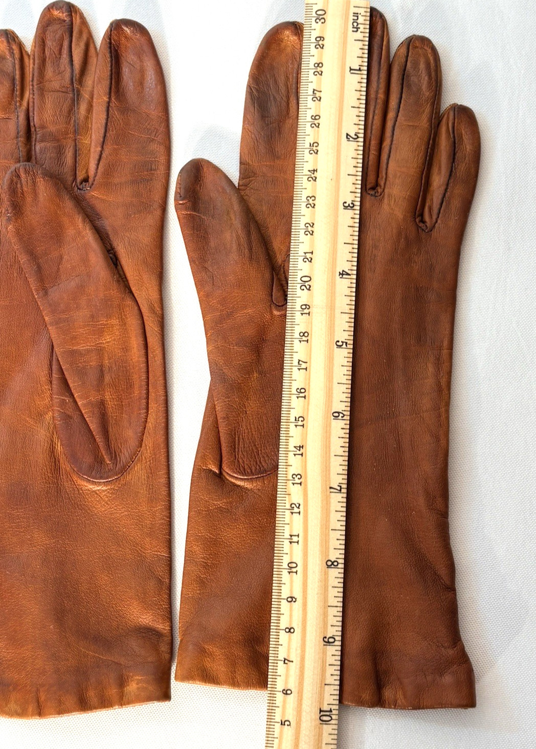 Vintage Nordstrom Leather Dress Gloves-covers wrist Cognac size 7 Soft Luxurious