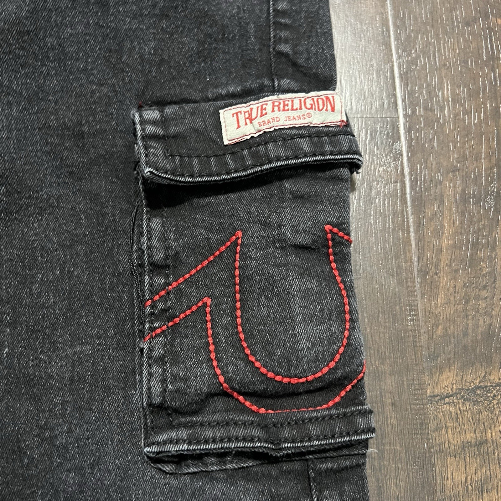 как выглядит True Religion Ricky Relaxed Straight Cargo Jeans Black Kids Size 10 фото