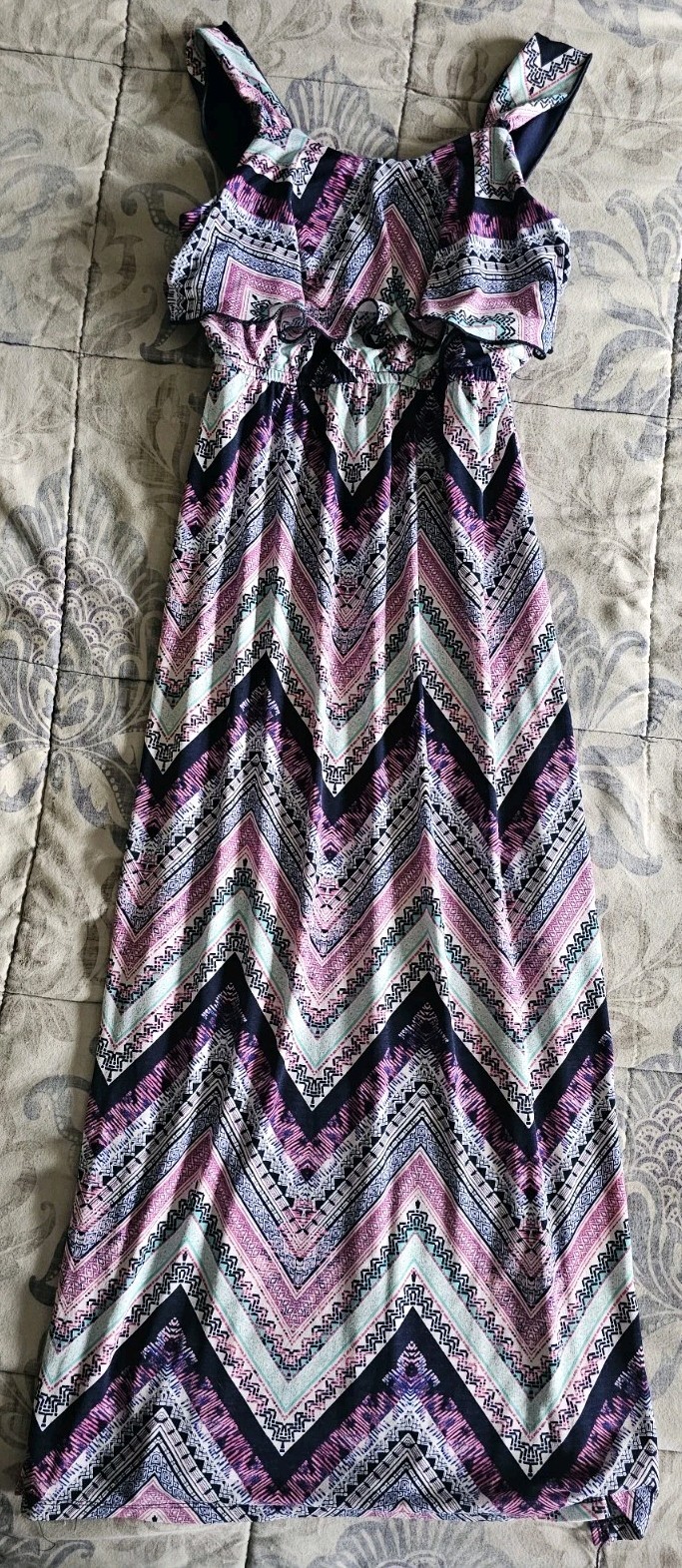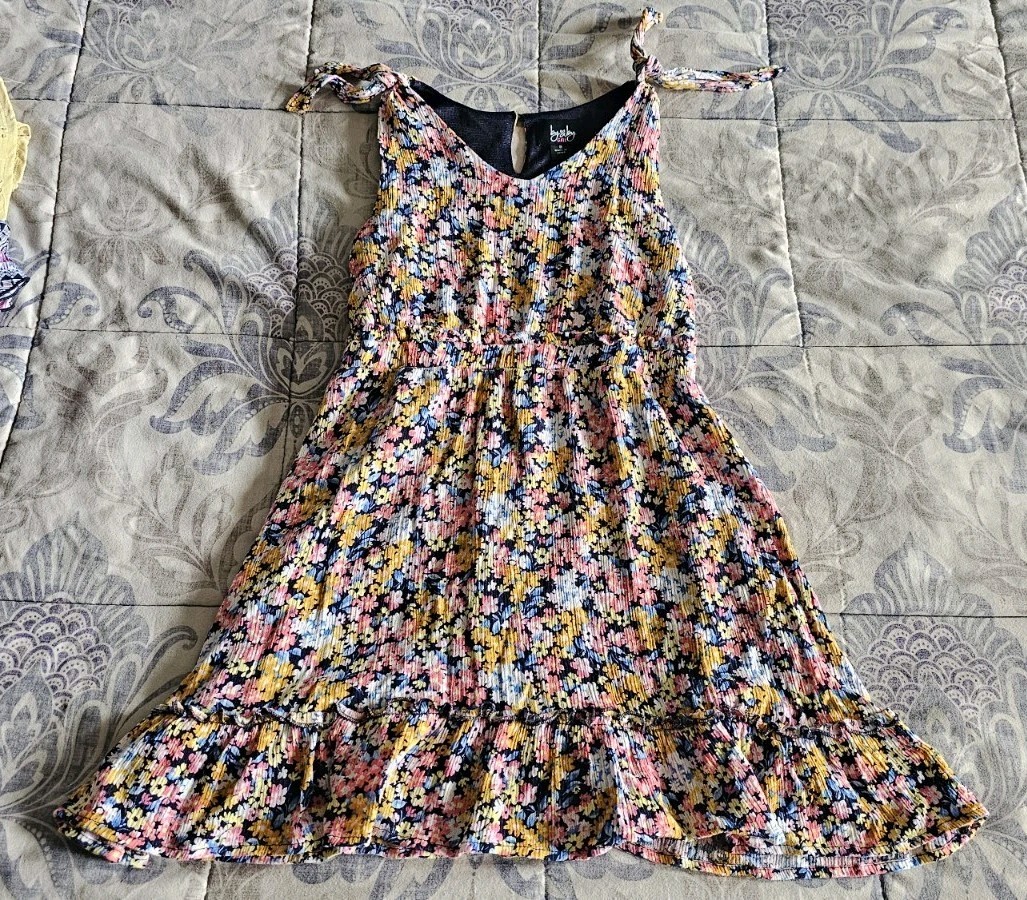 как выглядит Lot Of 6 Girls Size 7/8 A-Line Dress Floral Ruffle Geometric Blue Yellow фото