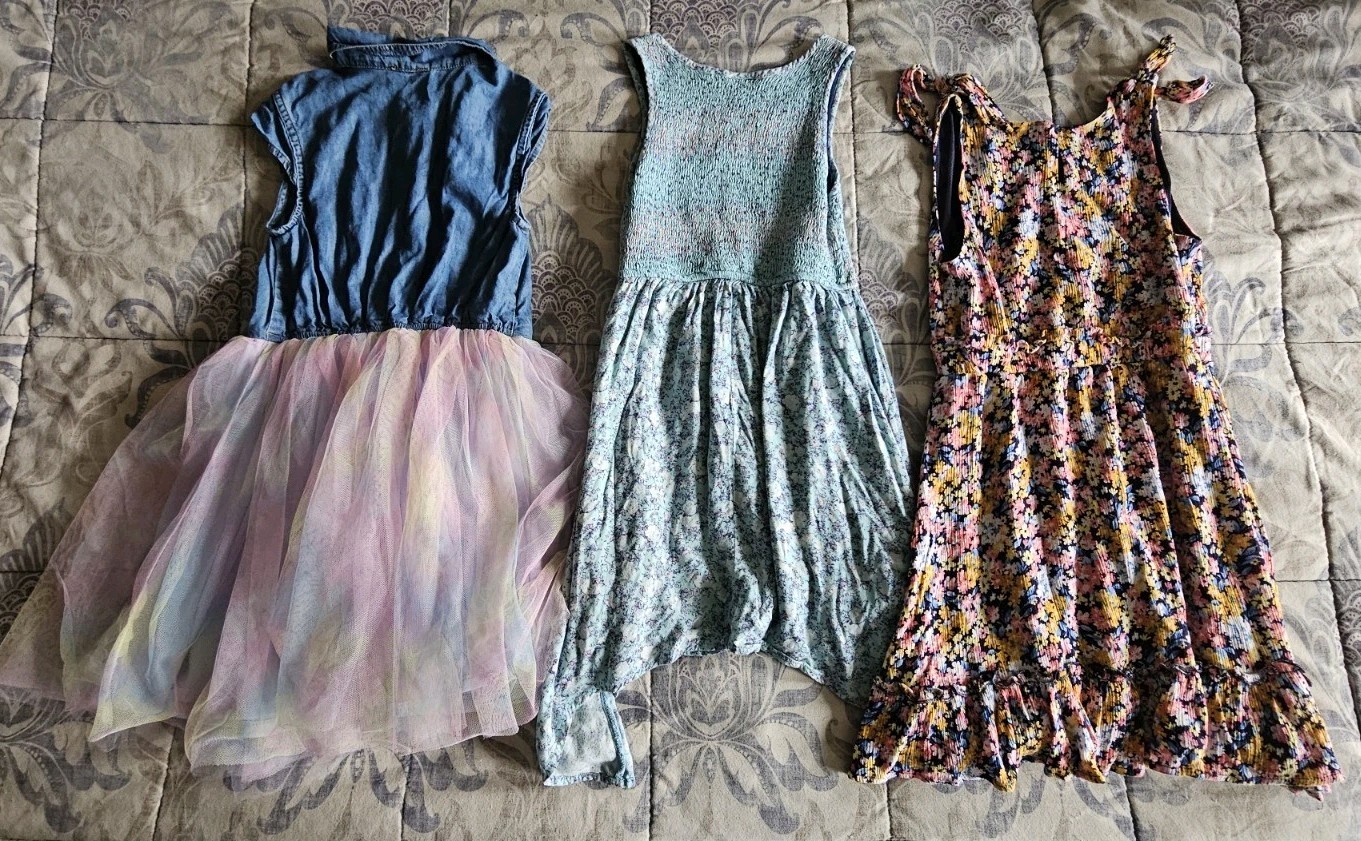 Lot Of 6 Girl's Size 7/8 A-Line Dress Floral Ruffle Geometric Blue Yellow