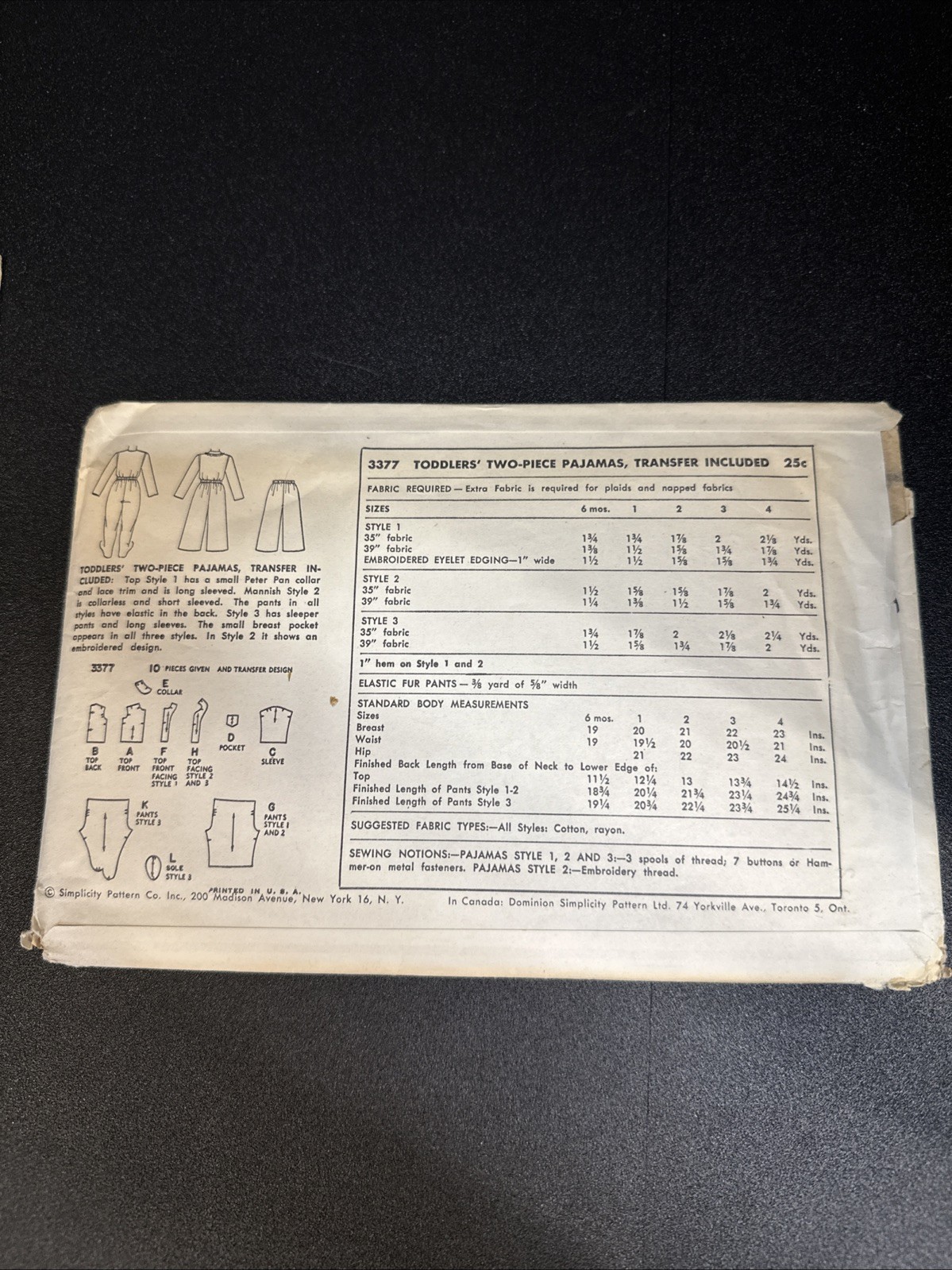 Lot of 2 Vintage Pajamas Sewing Patterns Advance Simplicity Sz 2