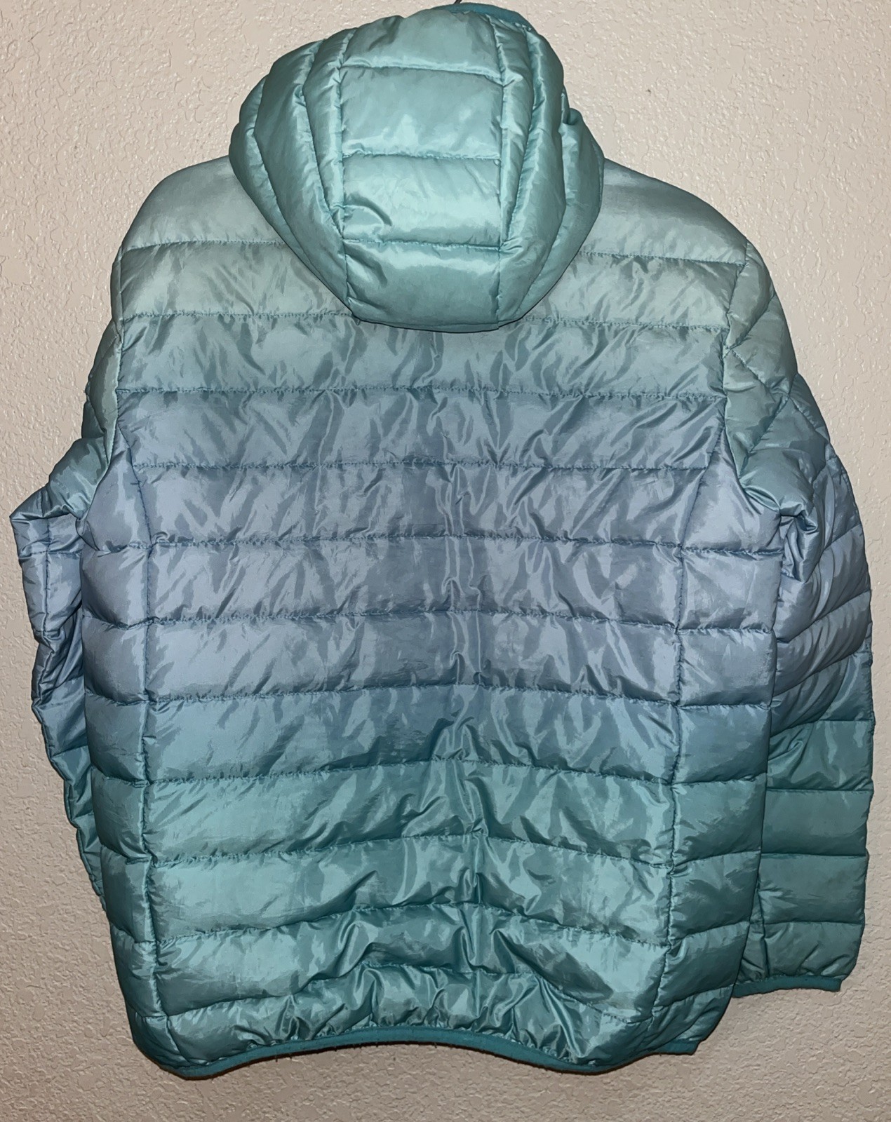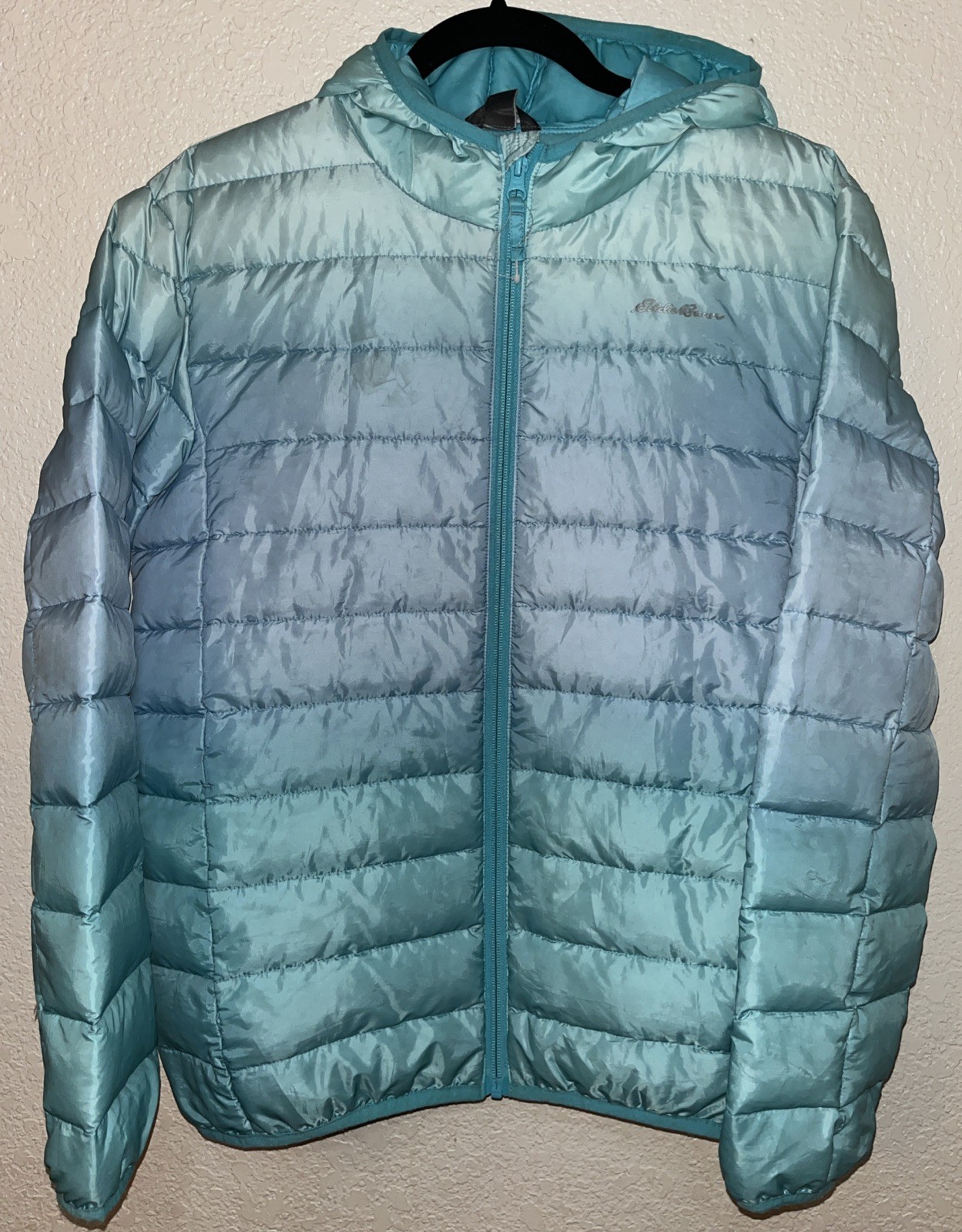 как выглядит Eddie Bauer Outdoors Hooded Puffer Jacket Girl Kids Size XL Ombr Aqua Blue фото