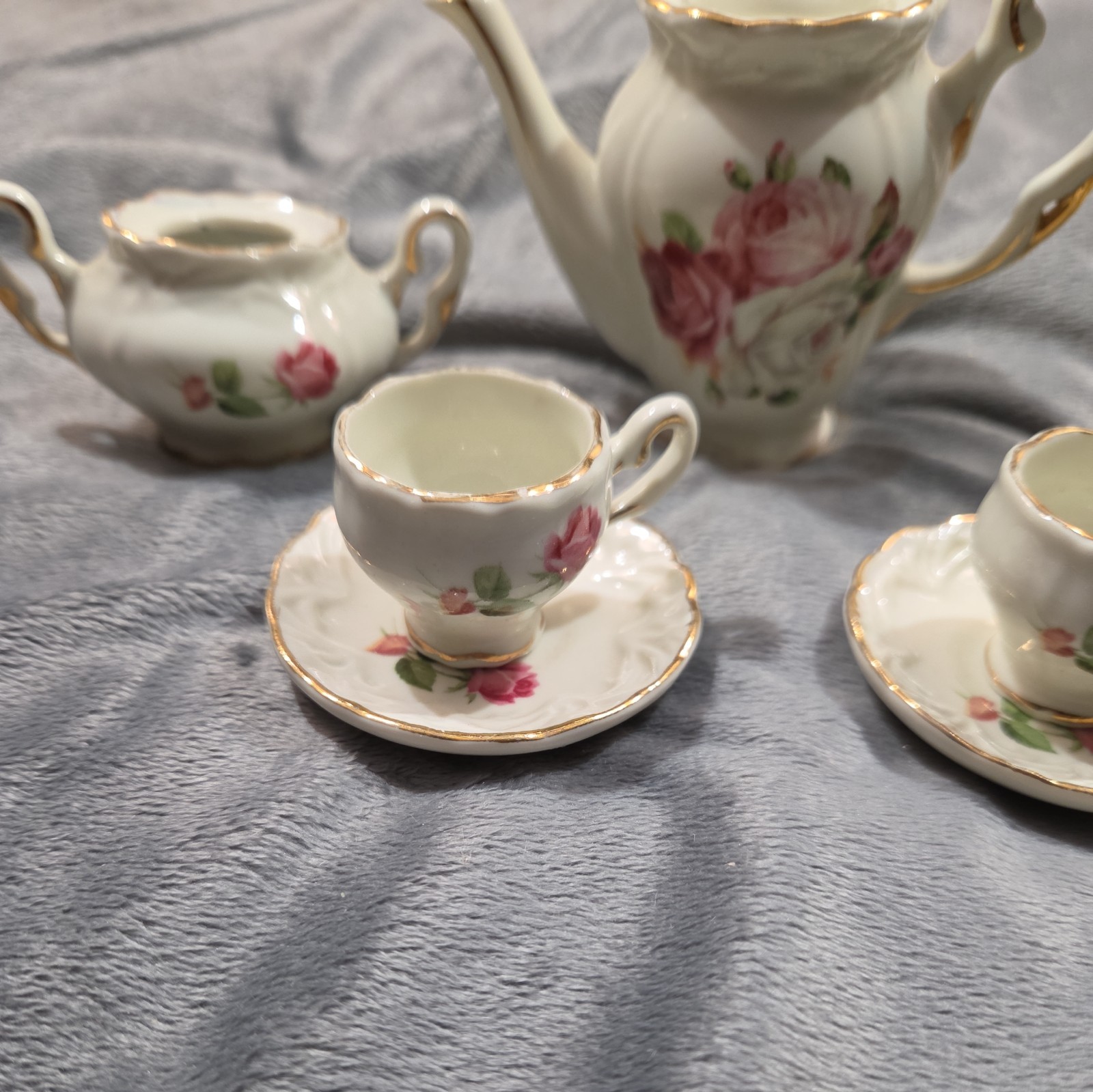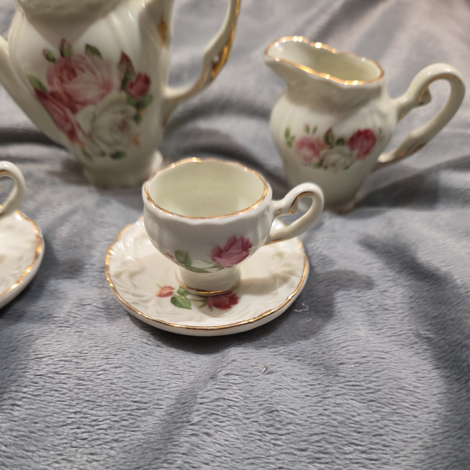 Vintage Mini Tea Set With Roses Gold Trim 8 pieces total.