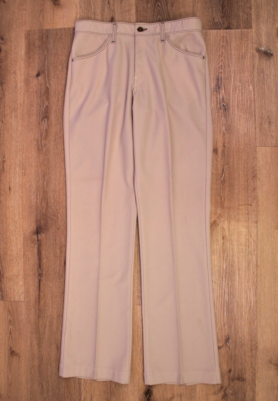 Men's VTG 70s Beige / Khaki 2 PC Western Leisure Suit Sz M 1970s Disco