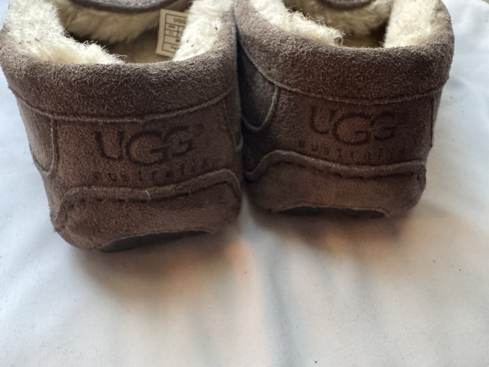 как выглядит UGG Slippers Wool Lined Men s SN 5775 Size 11 EU 44.5 Dark Gray Leather Slip On фото