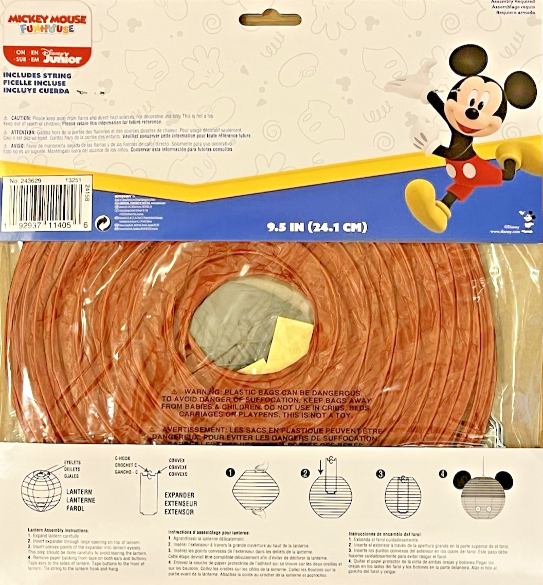 Disney Junior Jr. Mickey Mouse Birthday Party Paper Lanterns Set of 3 Boys Girls