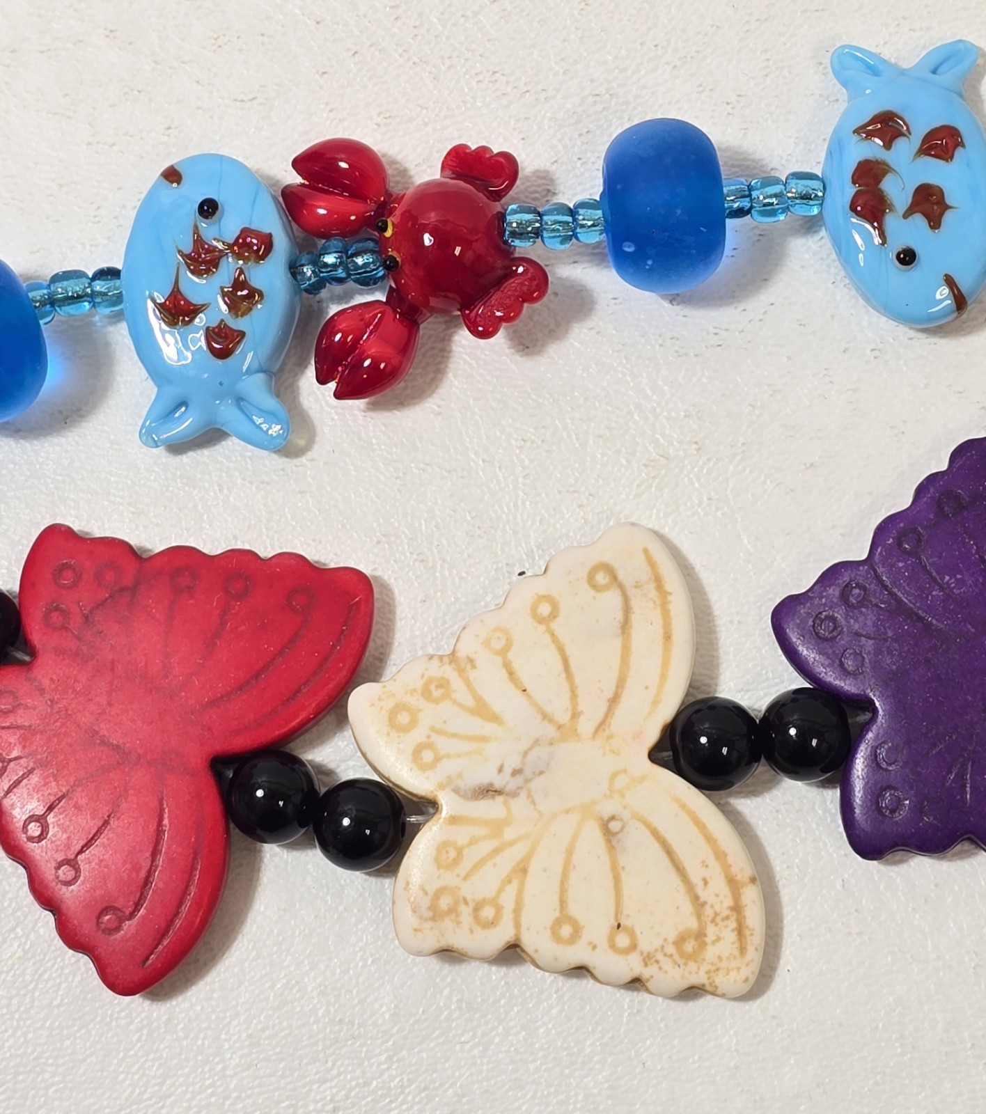 Lampwork Glass Beads Butterflies Crabs Fish Blue Red Black Purple White