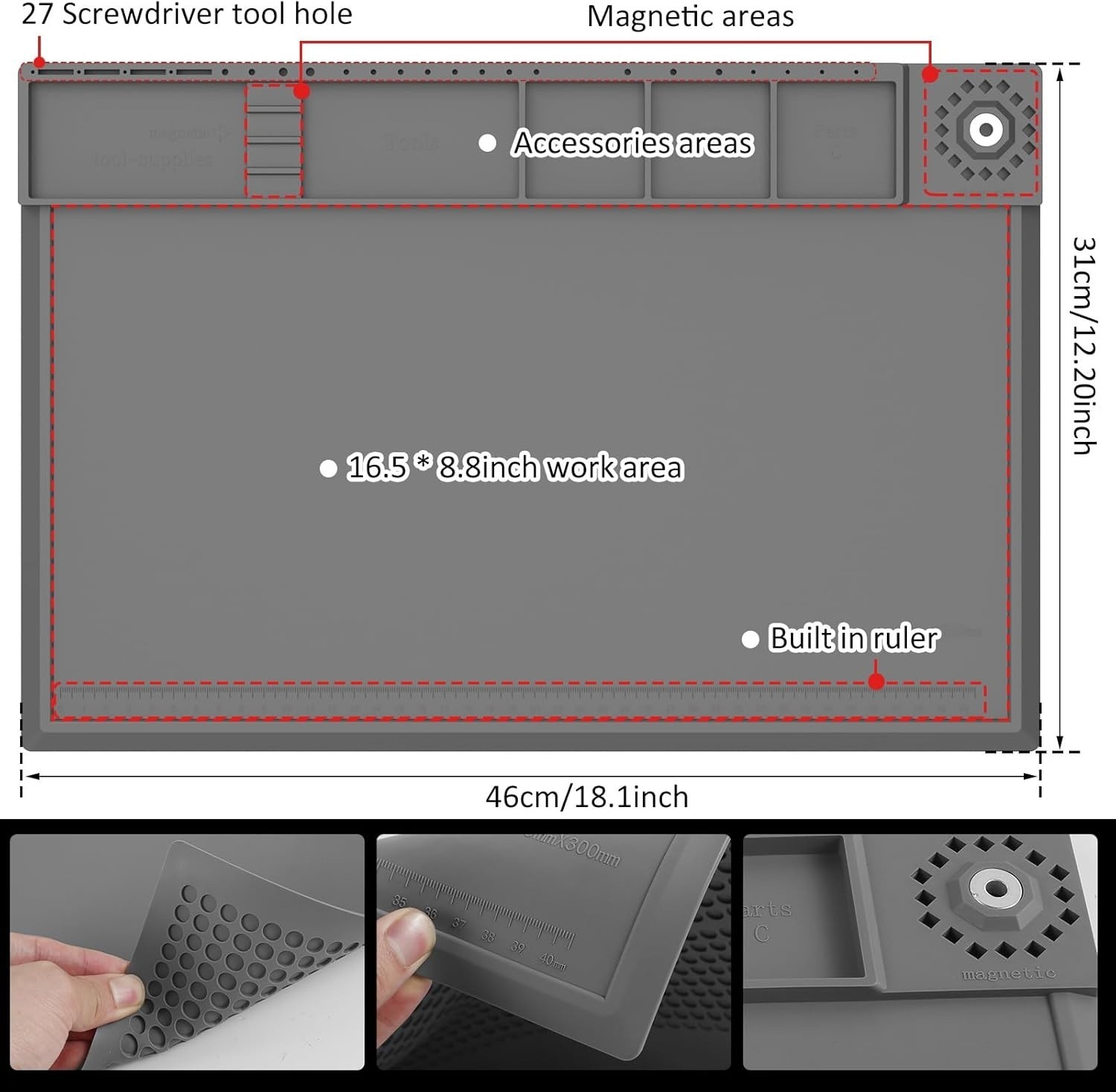 932 F Silicone Soldering Mat Heat-Resistant Magnetic Electronics PC Phone Repair