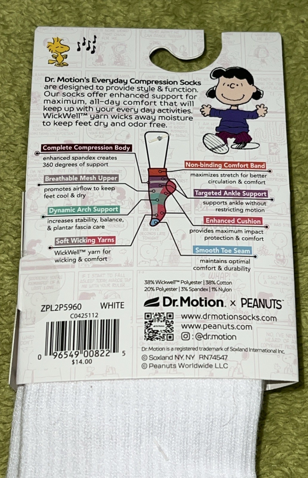 как выглядит Women Dr. Motion Snoopy Lettuce Edge 1/4 Compression Socks - NIP 9-11 -White фото