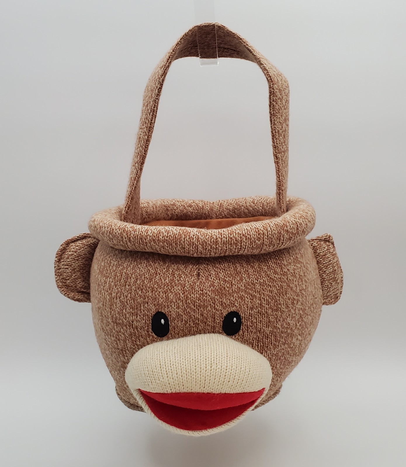 Sock Monkey Bucket Bag 5in Plush Brown Knit Structured Face Halloween Treat READ
