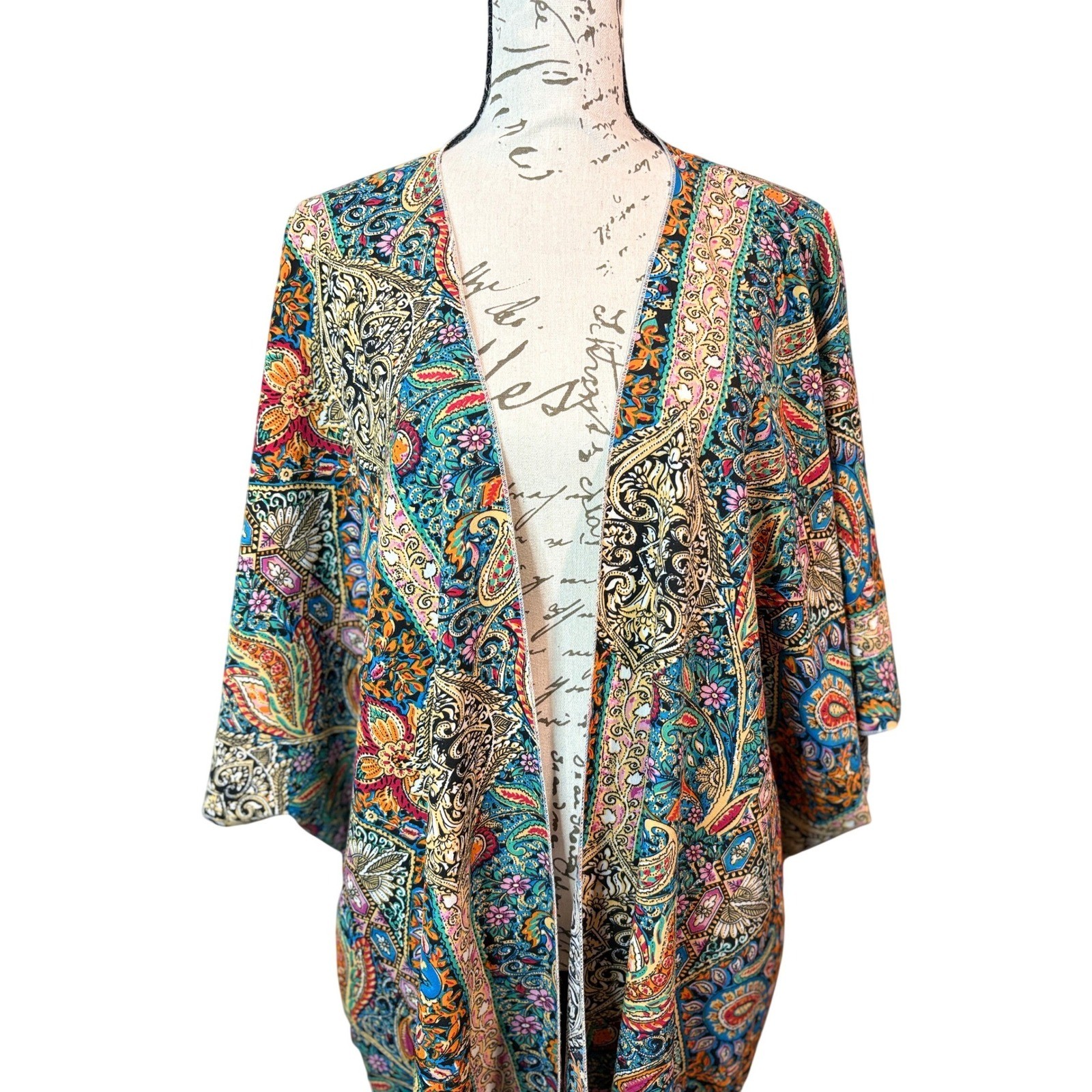 как выглядит Multicolor Paisley Kimono Women One Size Boho Tassel Coverup Layering фото