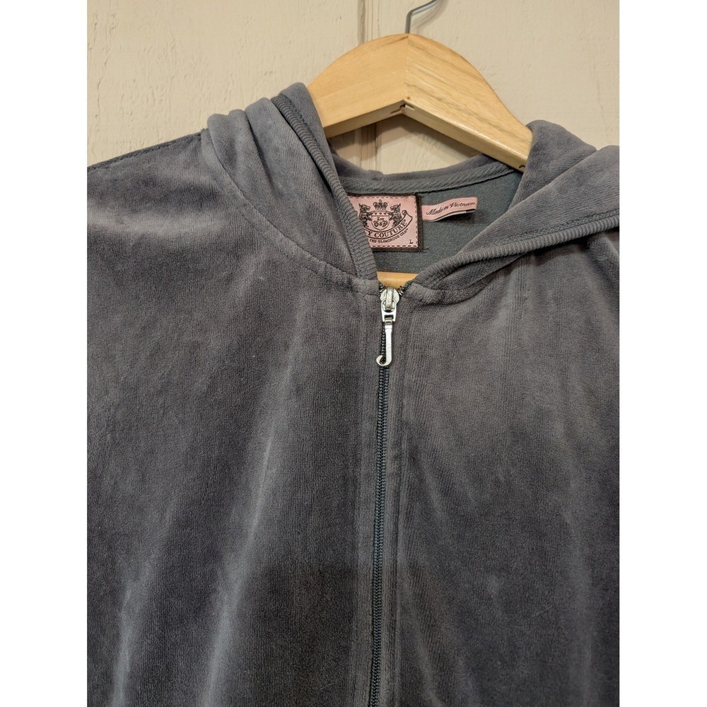 как выглядит Juicy Couture Y2K Gray Velour Zip Track Jacket Mad About Couture Graphic L фото