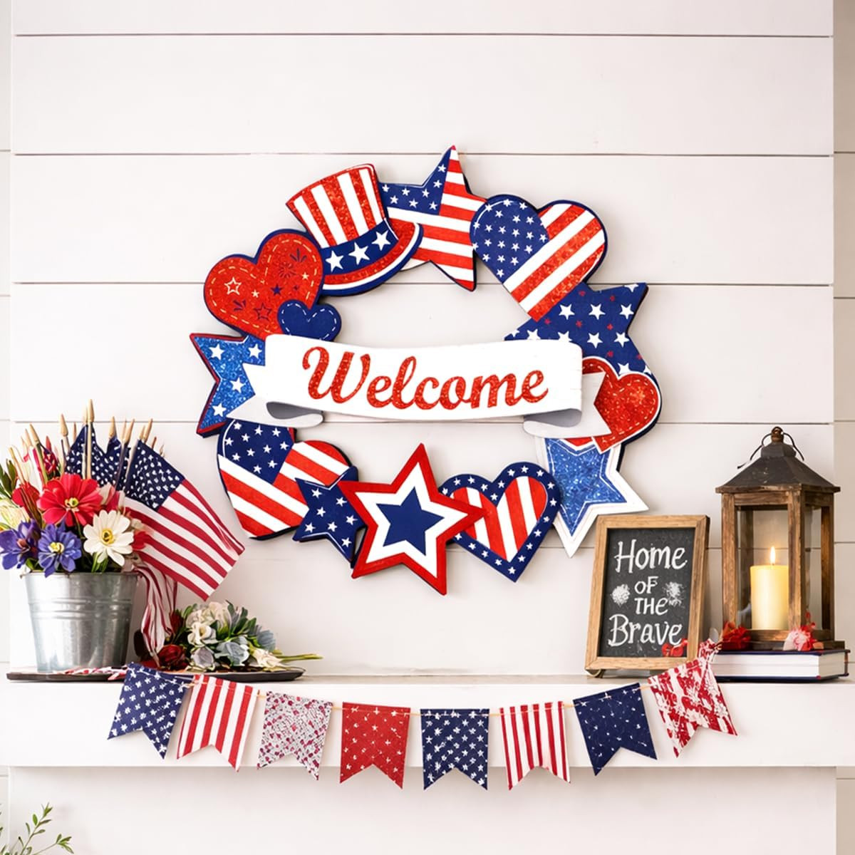 Wooden 4Th of July Decorations Patriotic Wreaths for Front Door Independence Day