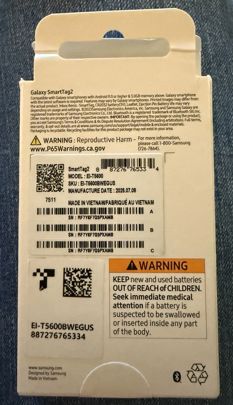 как выглядит SAMSUNG SMART TAG2, Bluetooth Tracker, Tracking Device, 1 Pack, White, New фото