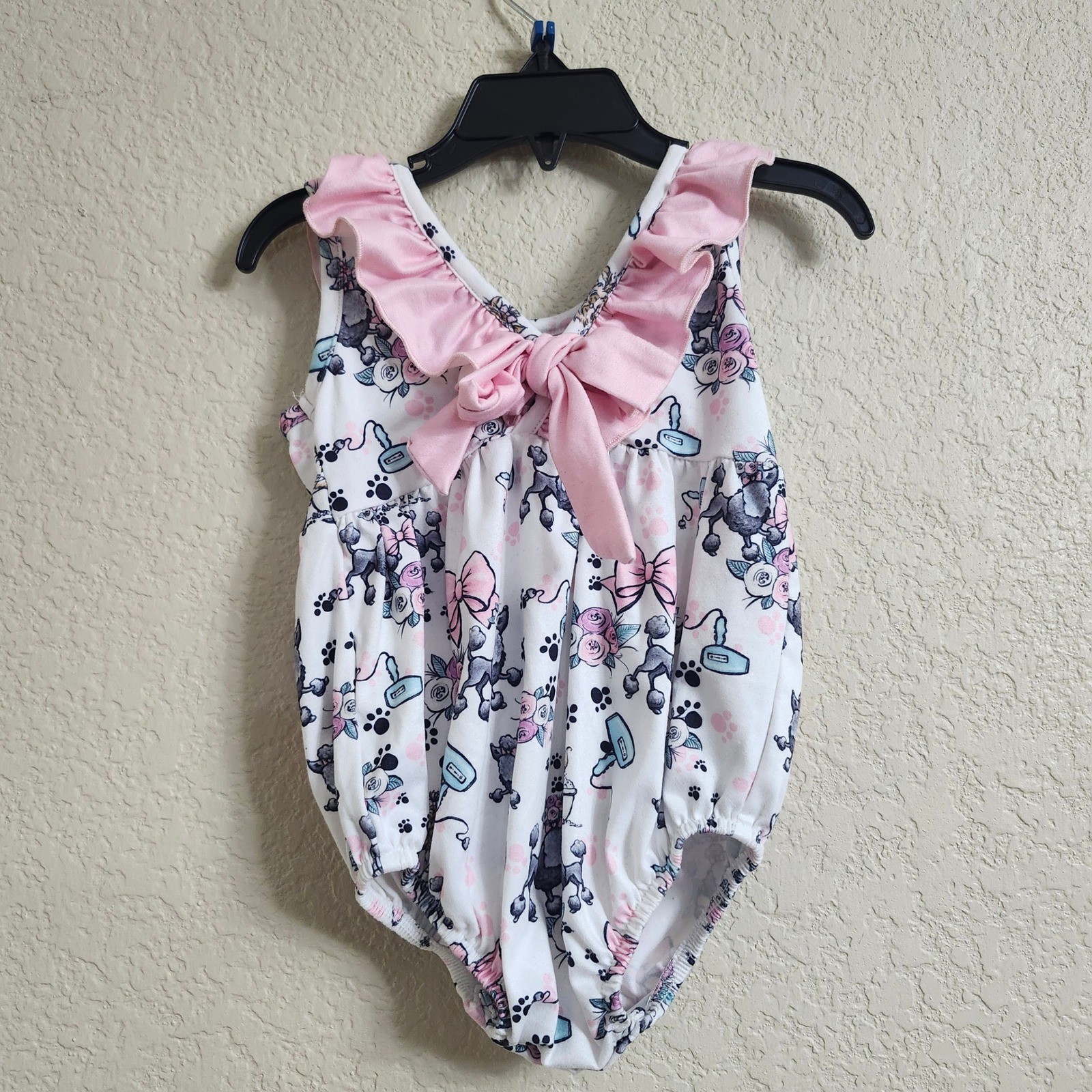 Pete Lucy Pampered Pets Size 12-18M Girls Poodle Romper Sleeveless Pink Ruffle