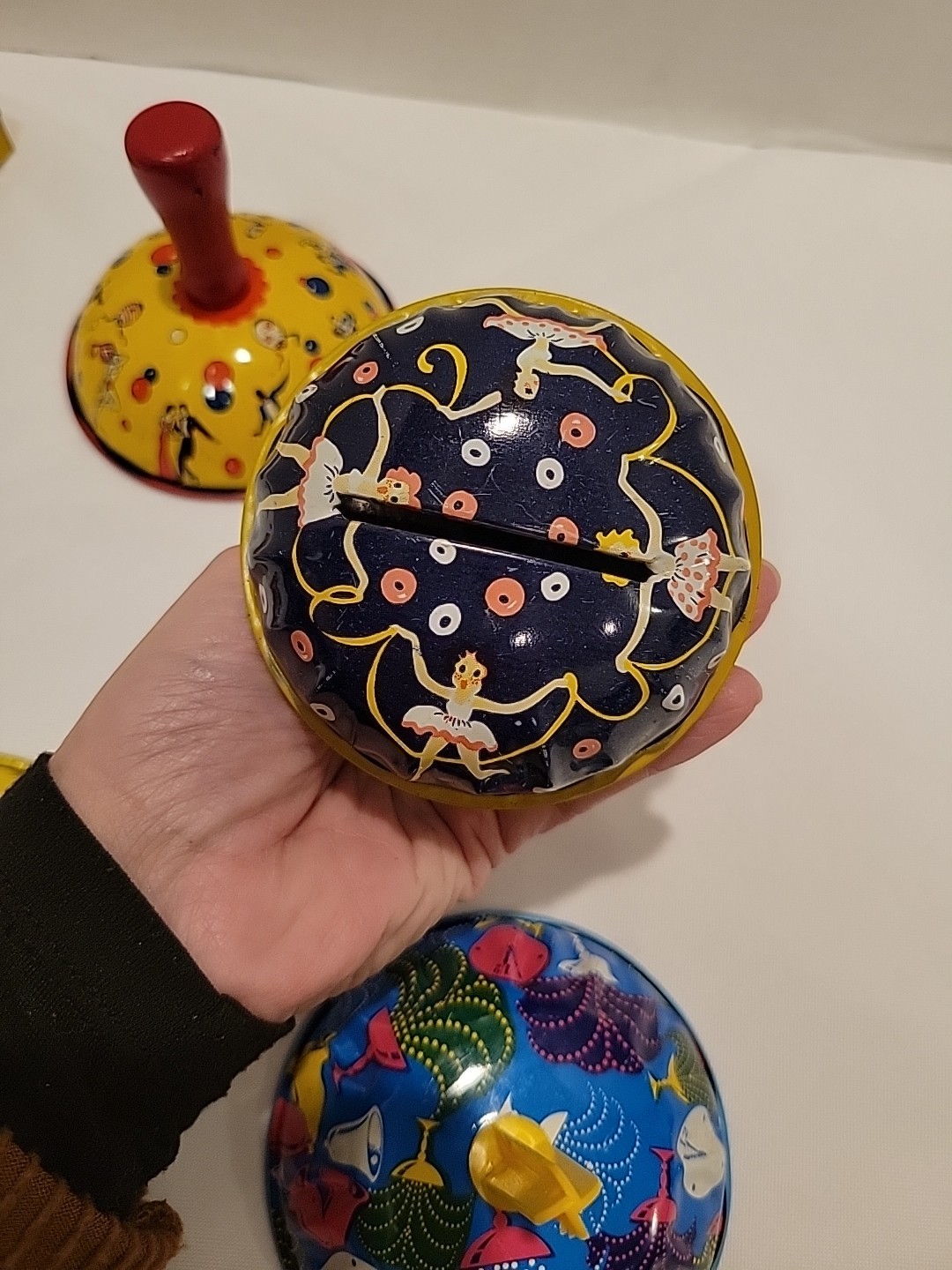 как выглядит Antique Mix US Metal Toy Mfg Co Kirchhof Tin Litho Party NYE Noise Makers Set 7 фото