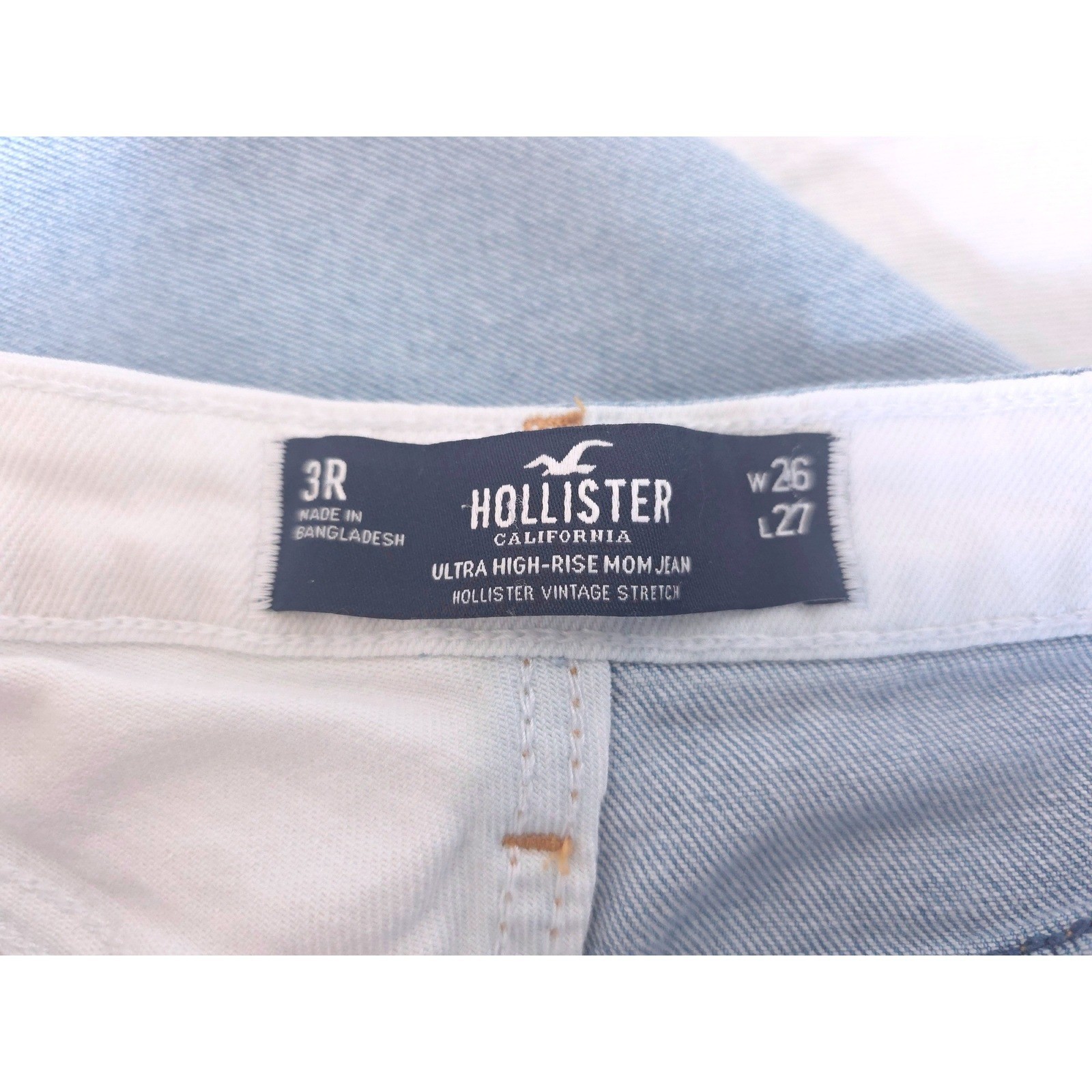 Hollister Ultra High-Rise Mom Jeans Two Tone Split White Blue 3R W26 L27 Stretch