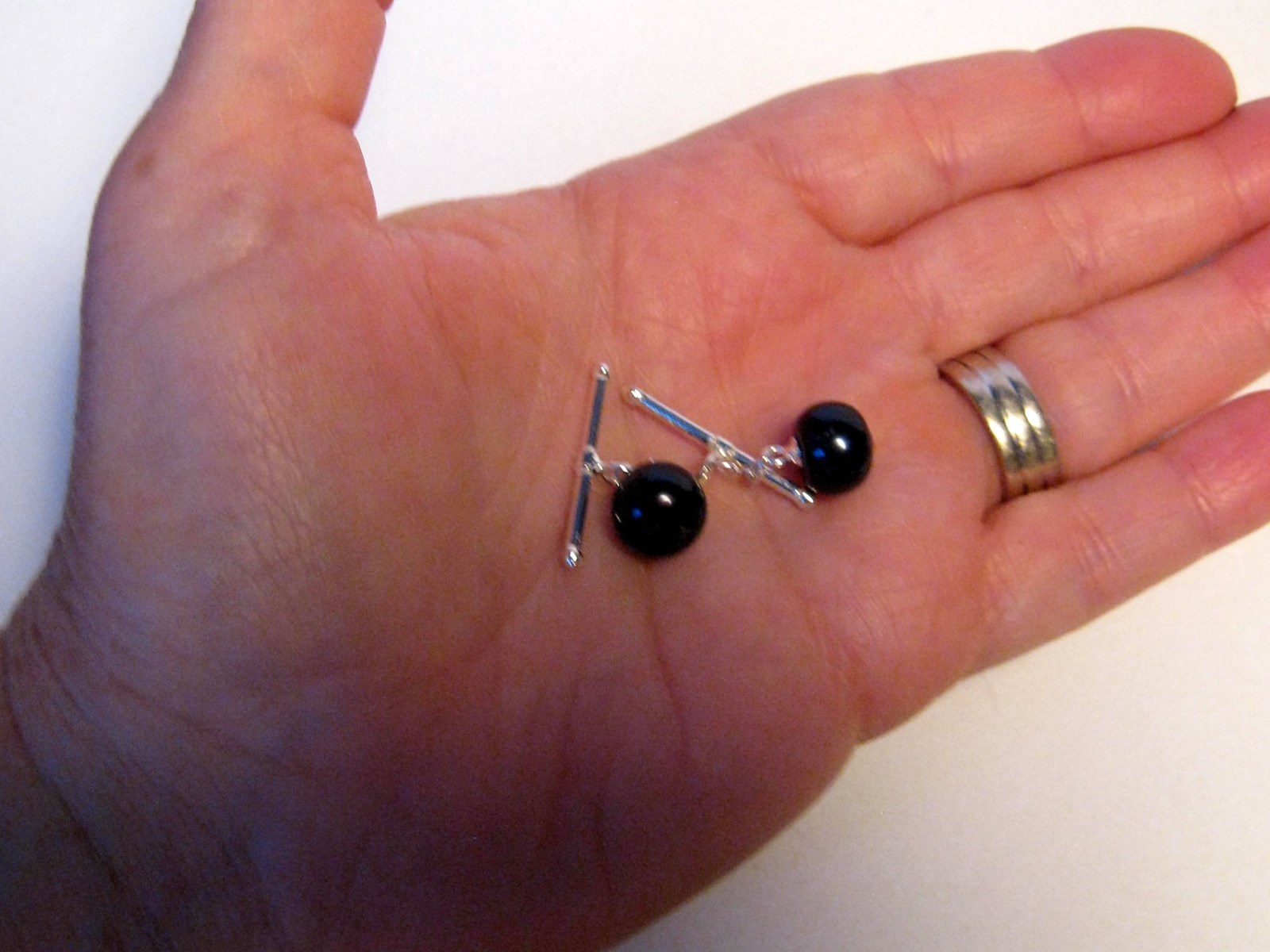 как выглядит 10mm Black Cultured Pearl Cuff Links - Sterling Silver .925 Chain Handmade New фото