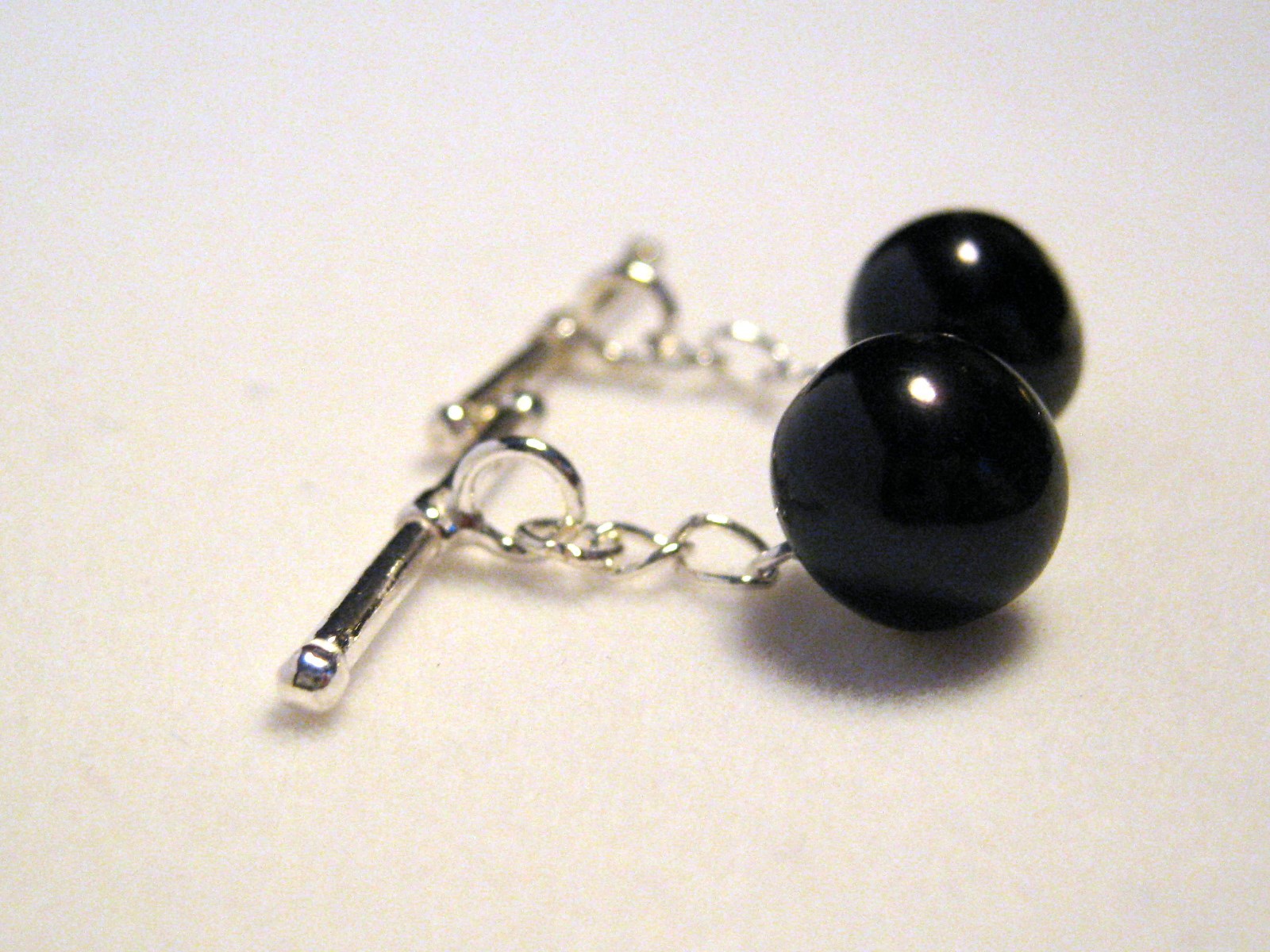 10mm Black Cultured Pearl Cuff Links - Sterling Silver .925 Chain Handmade New