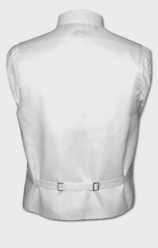 MEN'S WHITE SATIN FORMAL TUXEDO VEST, TIE HANKIE SET. Wedding, Prom, Cruise
